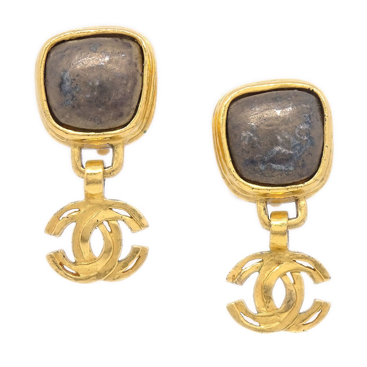 CHANEL 1997 Stone CC Dangle Earrings 39875