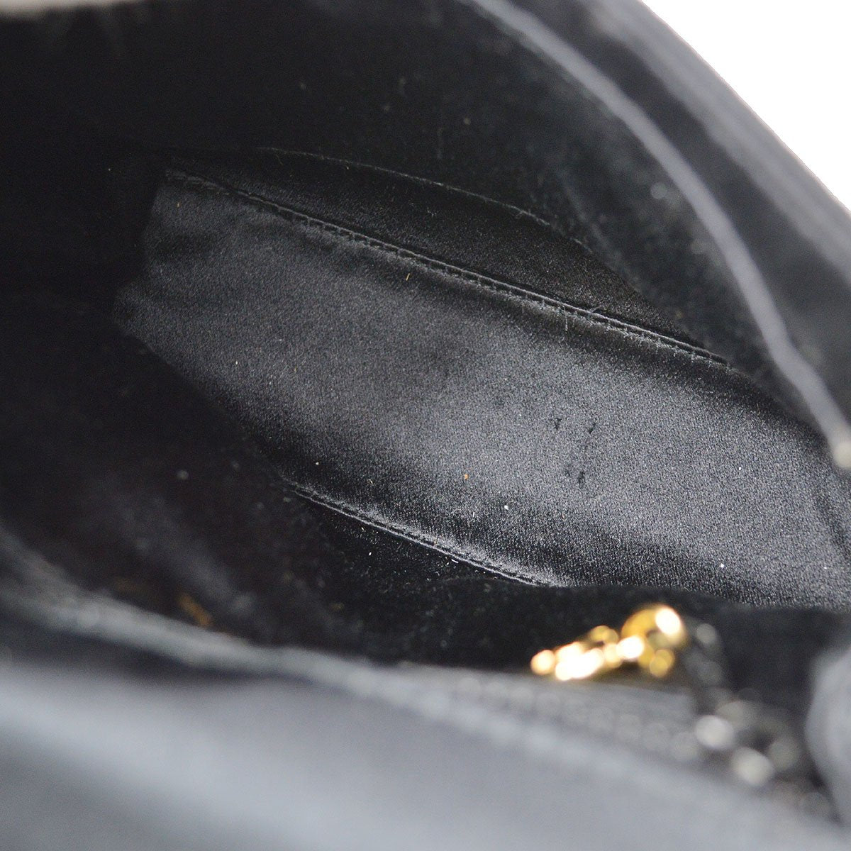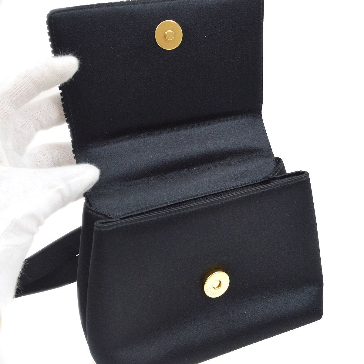 CHANEL Beads Cross Body Shoulder Bag Black Satin