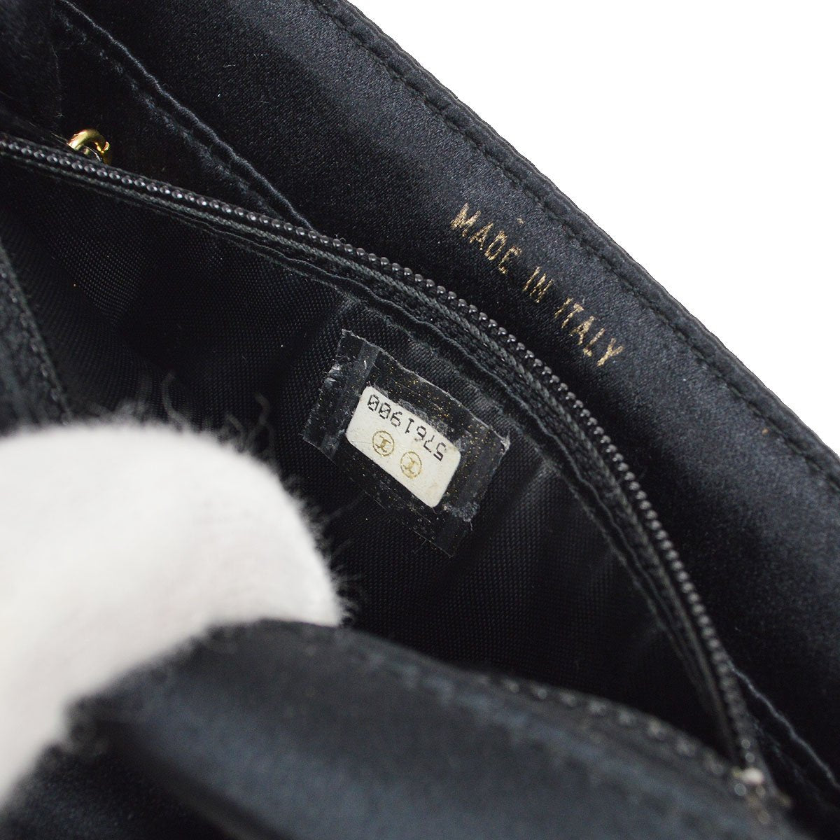 CHANEL 1998 Black Satin Beaded Trimmed Flap Bag 21211