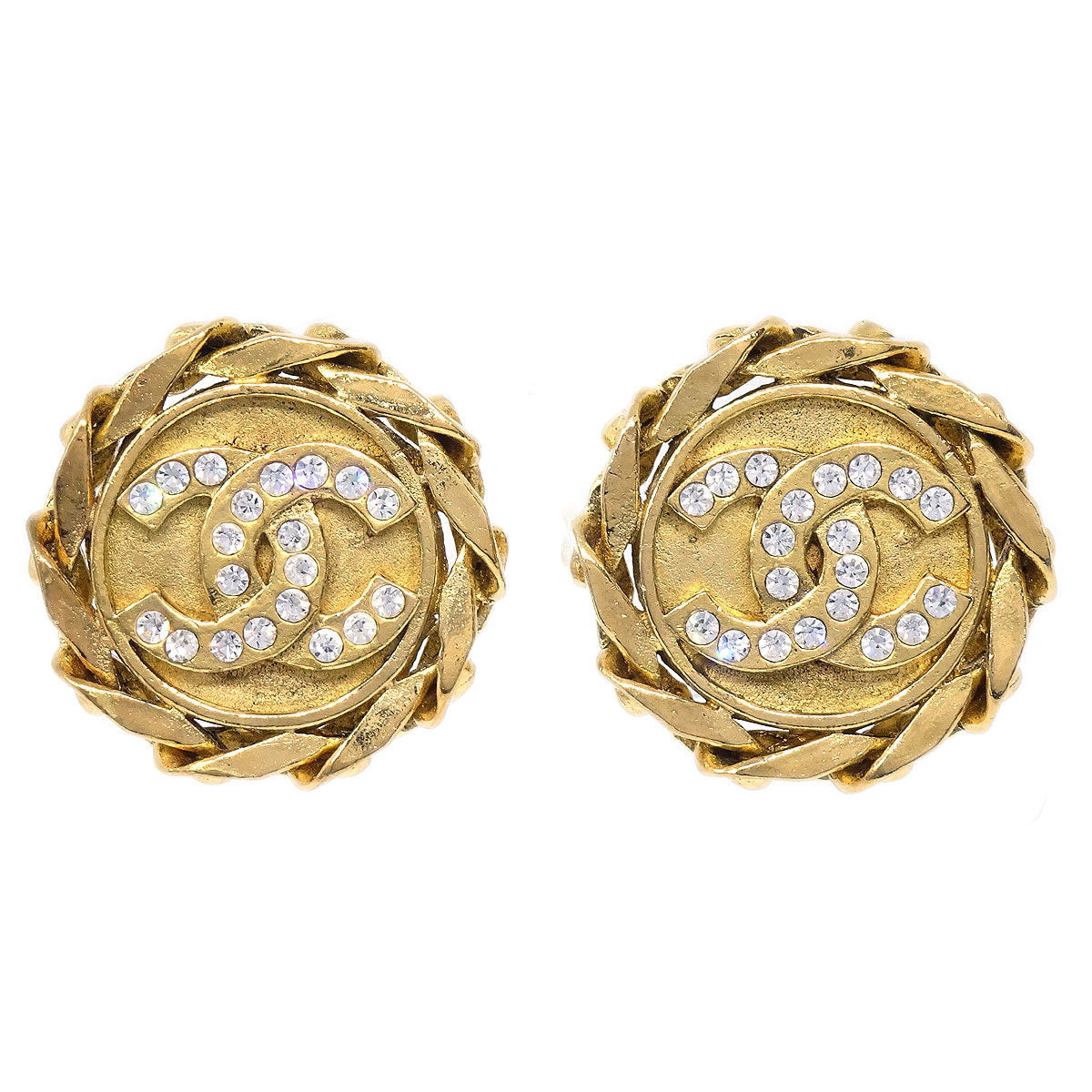 CHANEL 1998 Crystal & Gold Earrings Clip-On 23 17257