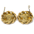 CHANEL Button Rhinestone Earrings Clip-On Gold 23