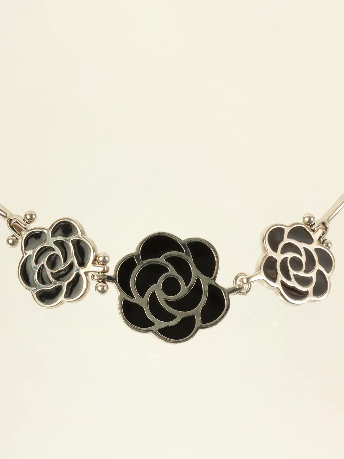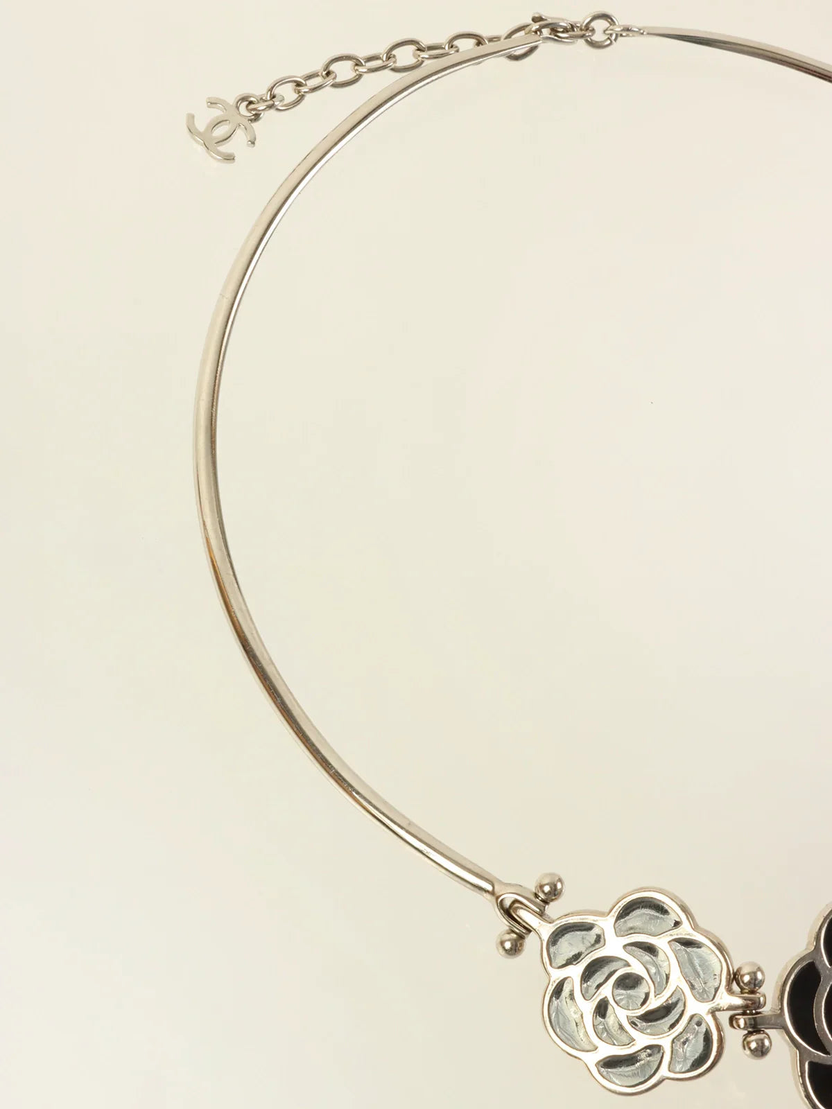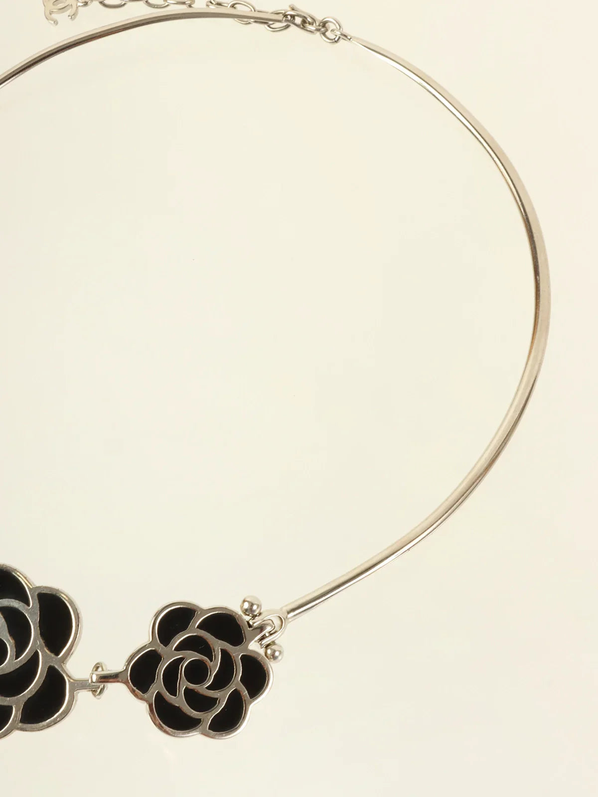 CHANEL 1998 Made Camellia Choker Silver/Black