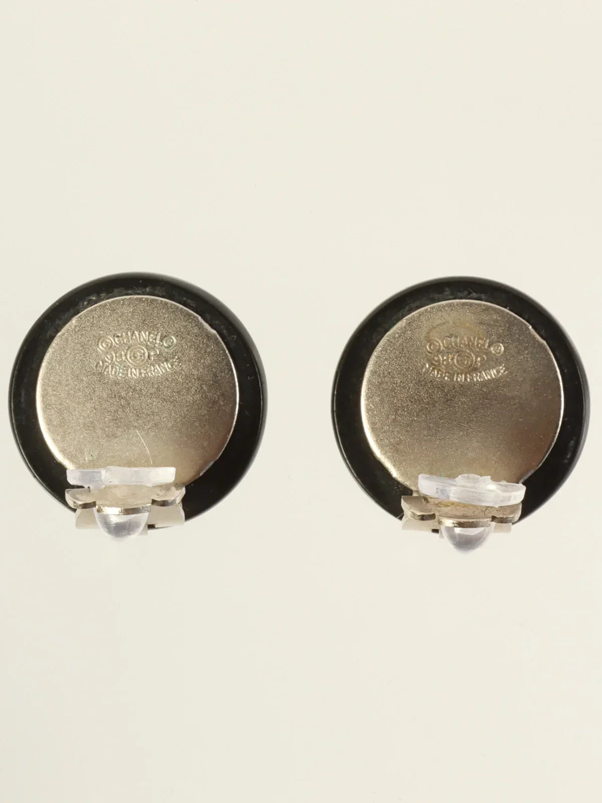 CHANEL 1998 Made Round Cc Mark Earrings Black