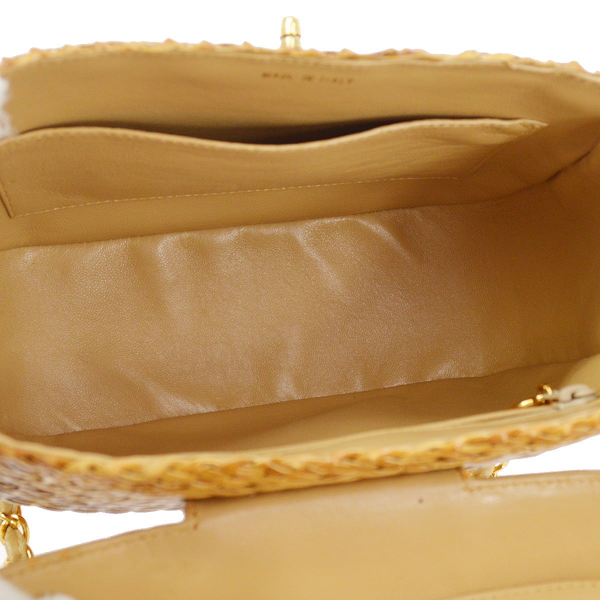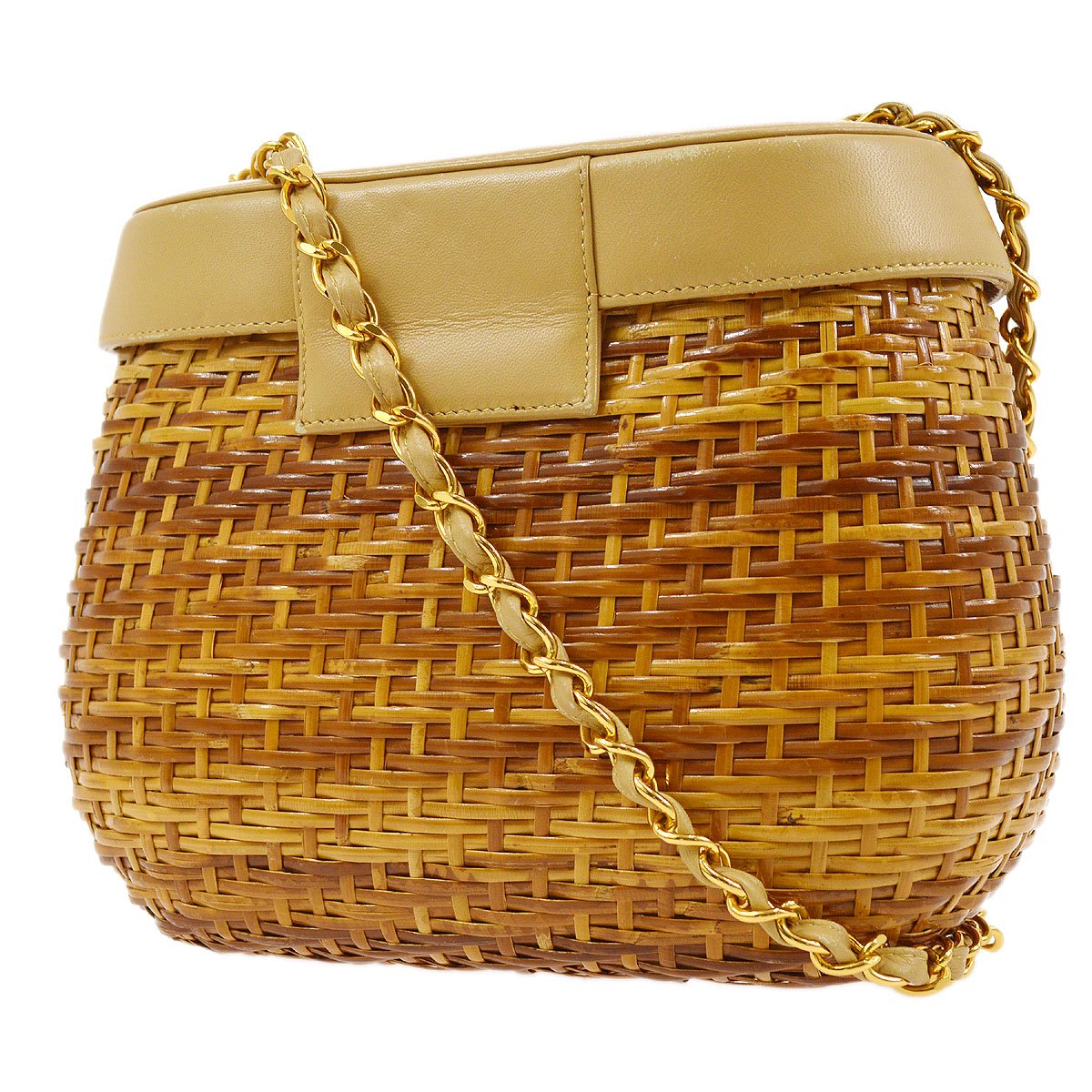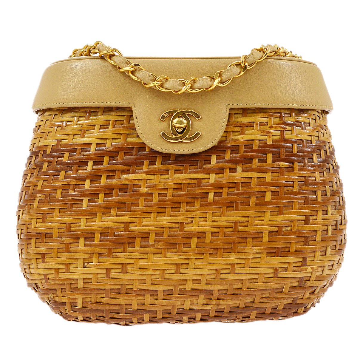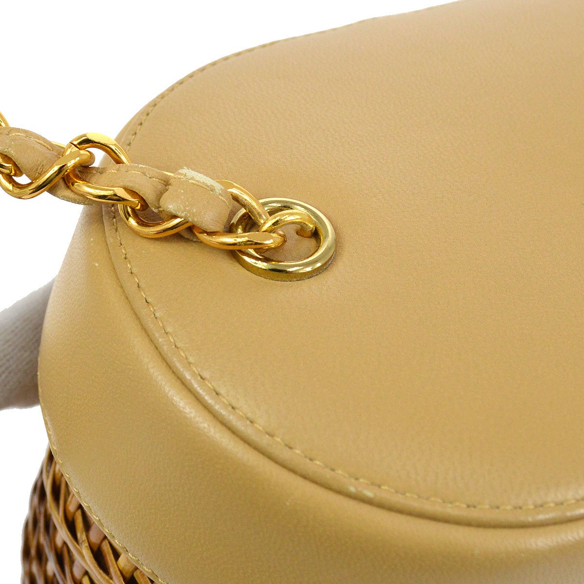 CHANEL CC Basket Chain Shoulder Bag Beige Brown Rattan