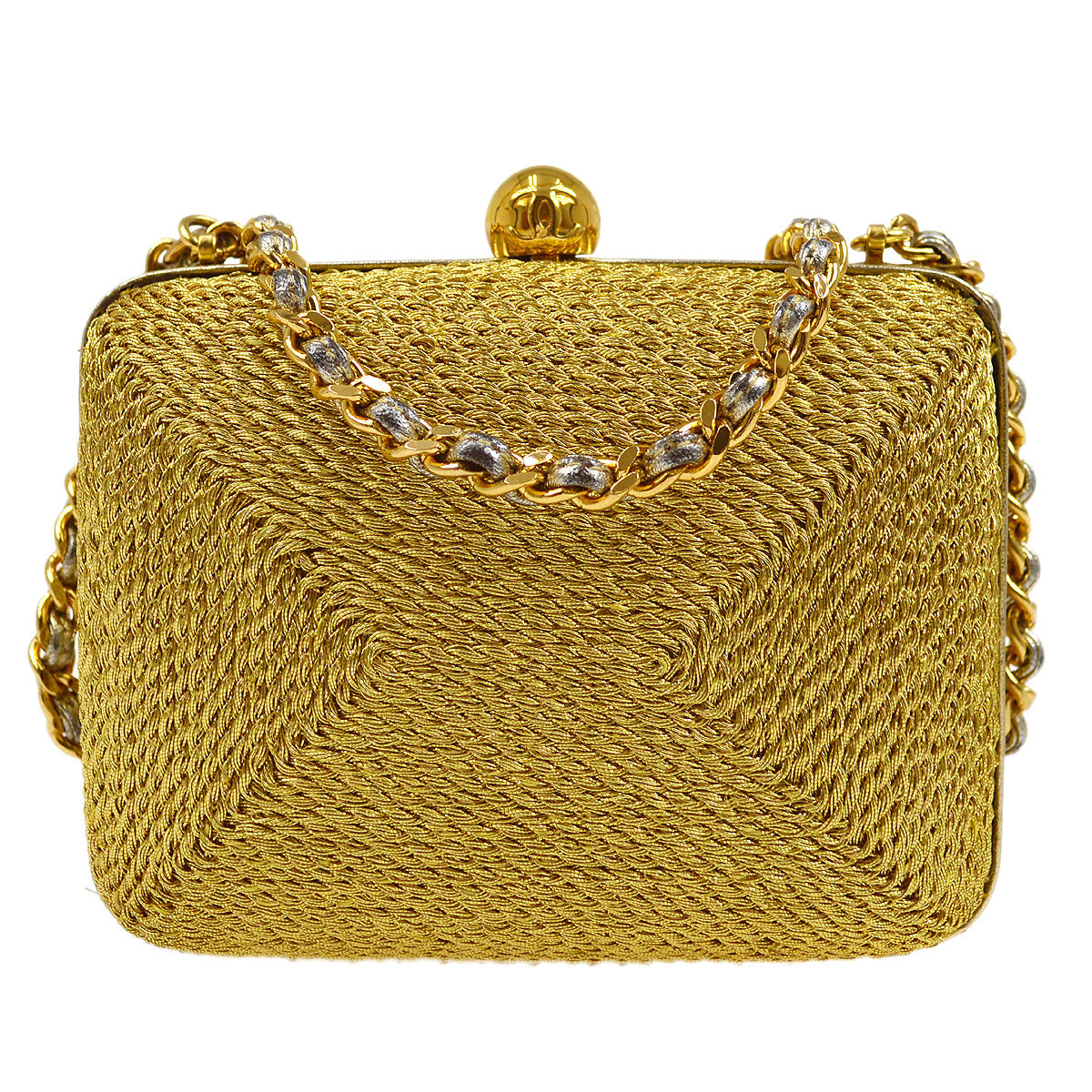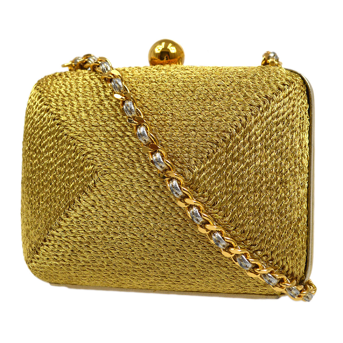 CHANEL 1998 Woven Evening Bag Gold 63979