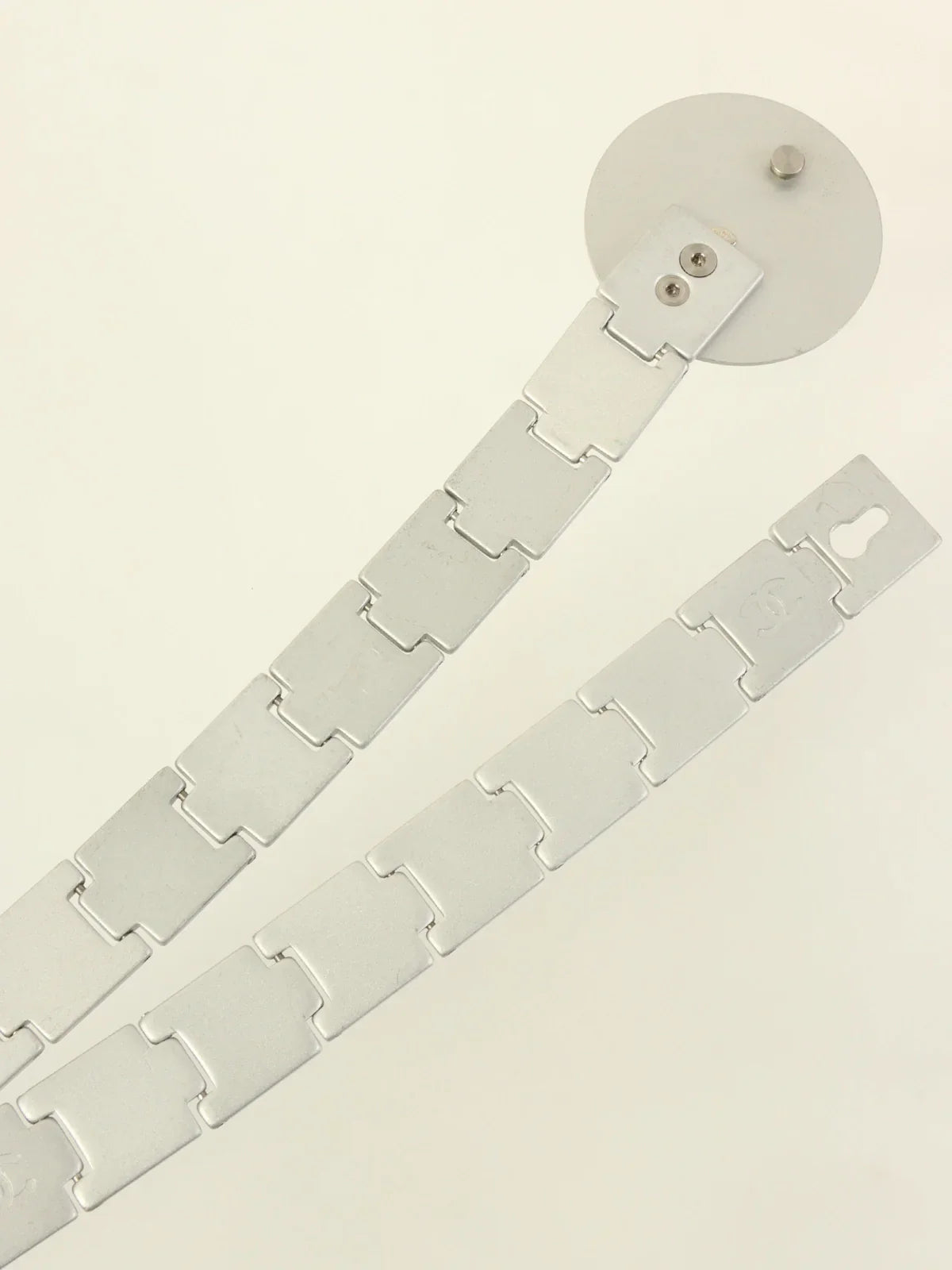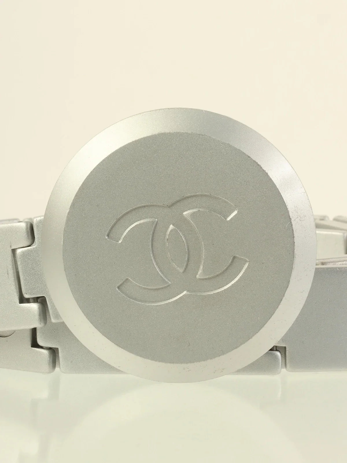 CHANEL 1999 Made Round Cc Mark Plate Belt Silver