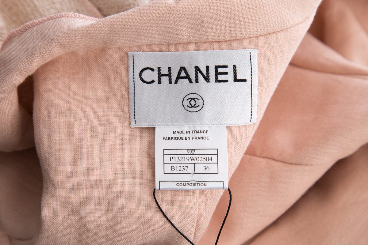 Chanel 1999 Pink Woven Linen Jacket. This item is vintage and in very good condition.