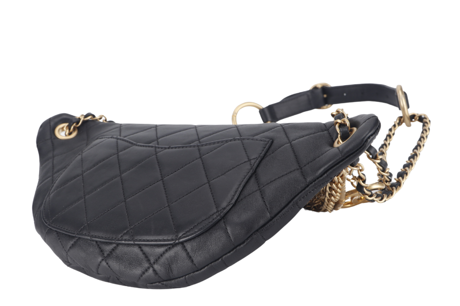 CHANEL 19A ALL ABOUT CHAINS (2830xxxx) BLACK QUILTED LEATHER BUMBAG WITH AND DUST COVER