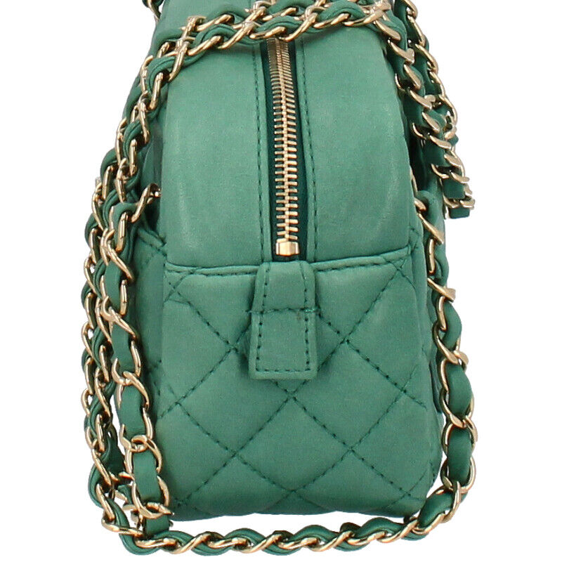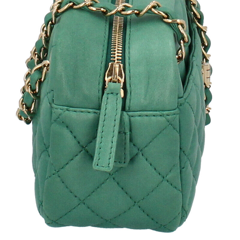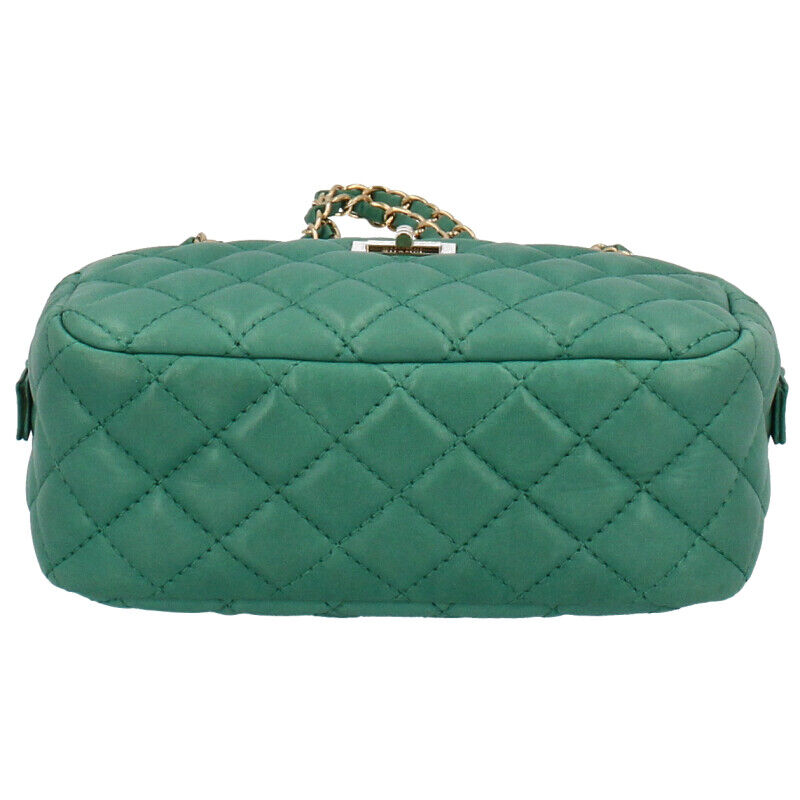 Invest in a piece of fashion history with this stunning Chanel 2.55 Chain Shoulder Bag. Its vibrant green hue adds a pop of color to any outfit, while the quality calfskin ensures durability and longevity. Make a statement and elevate your look with this timeless accessory that transcends trends.