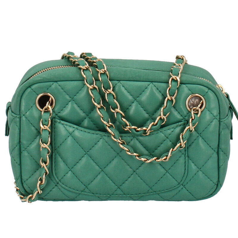 Elevate your style with the iconic Chanel 2.55 Chain Shoulder Bag in luxurious green calfskin. This gem exudes sophistication and charm, perfect for the fashion-forward woman. The timeless design features the signature Mademoiselle lock and double flap interior, making it both chic and functional.