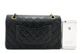 An entic CHANEL 2.55 Classic Double Flap Medium Chain Shoulder Bag Black made of black Lambskin.