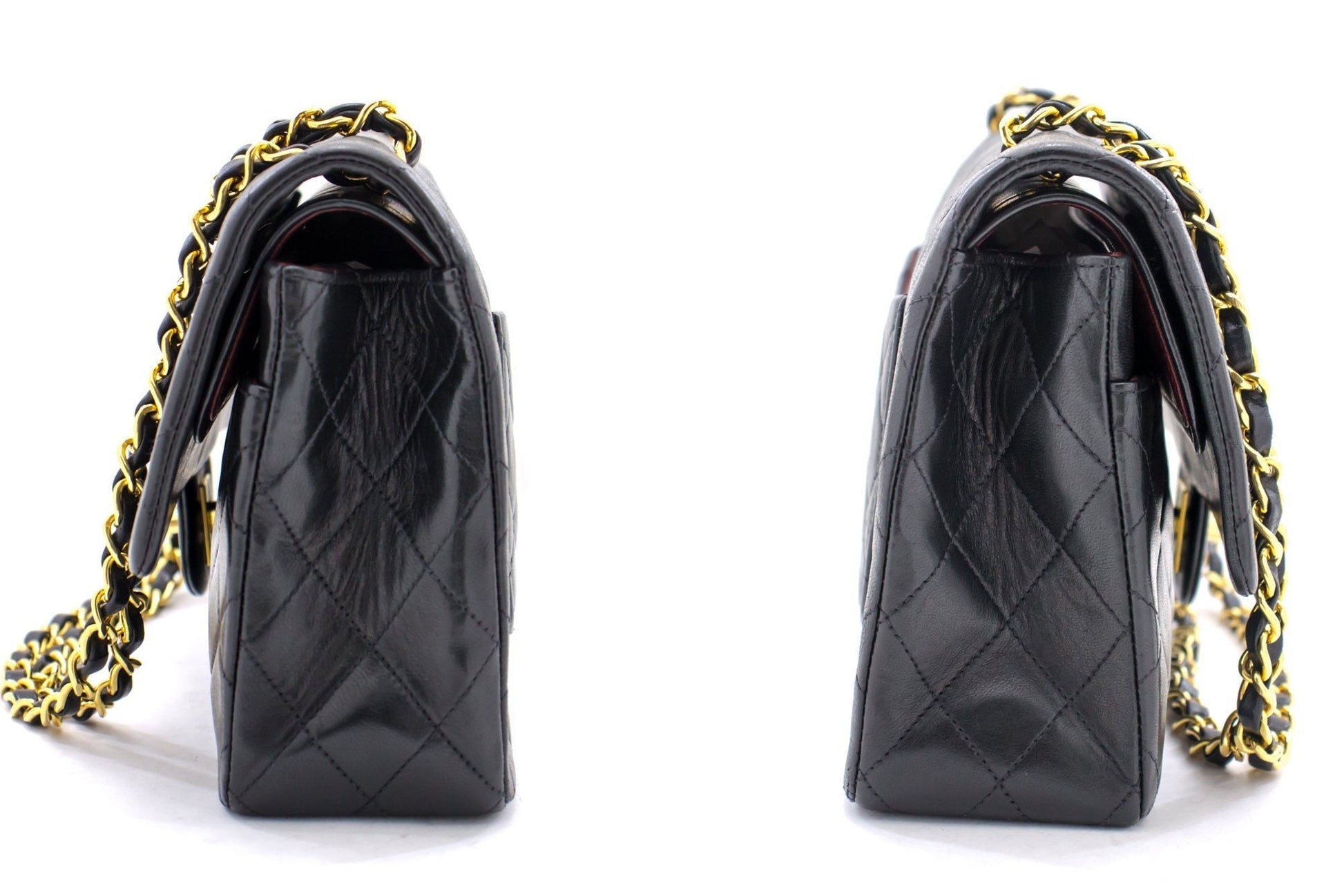 CHANEL 2.55 Double Flap Medium Chain Shoulder Bag Black Lambskin