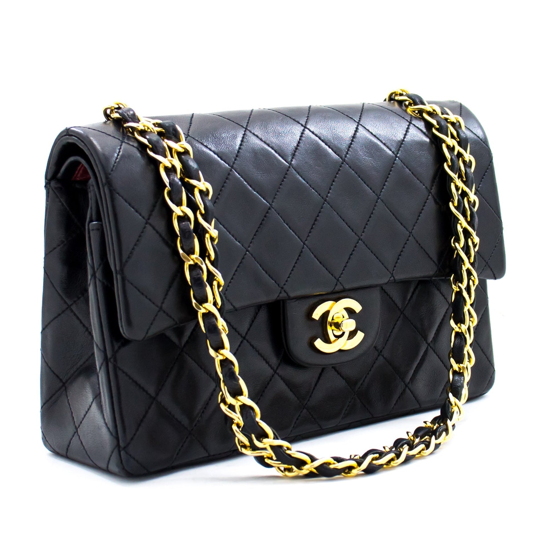 An entic CHANEL 2.55 Classic Double Flap Small Chain Shoulder Bag Black made of black Lambskin.