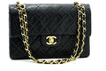 CHANEL 2.55 Double Flap Small Chain Shoulder Bag Black Lambskin