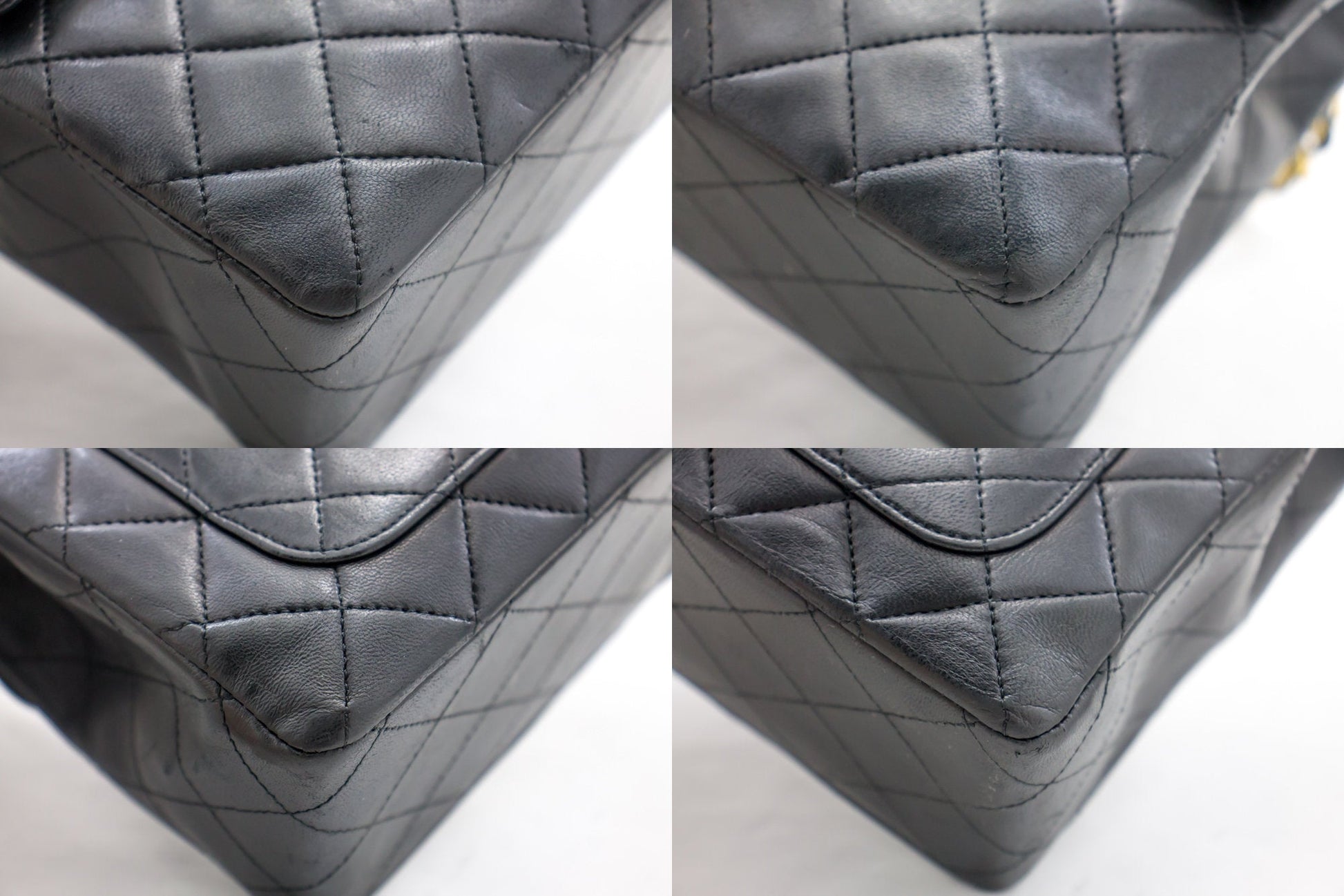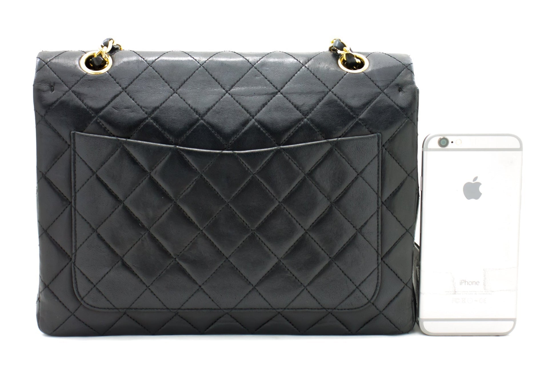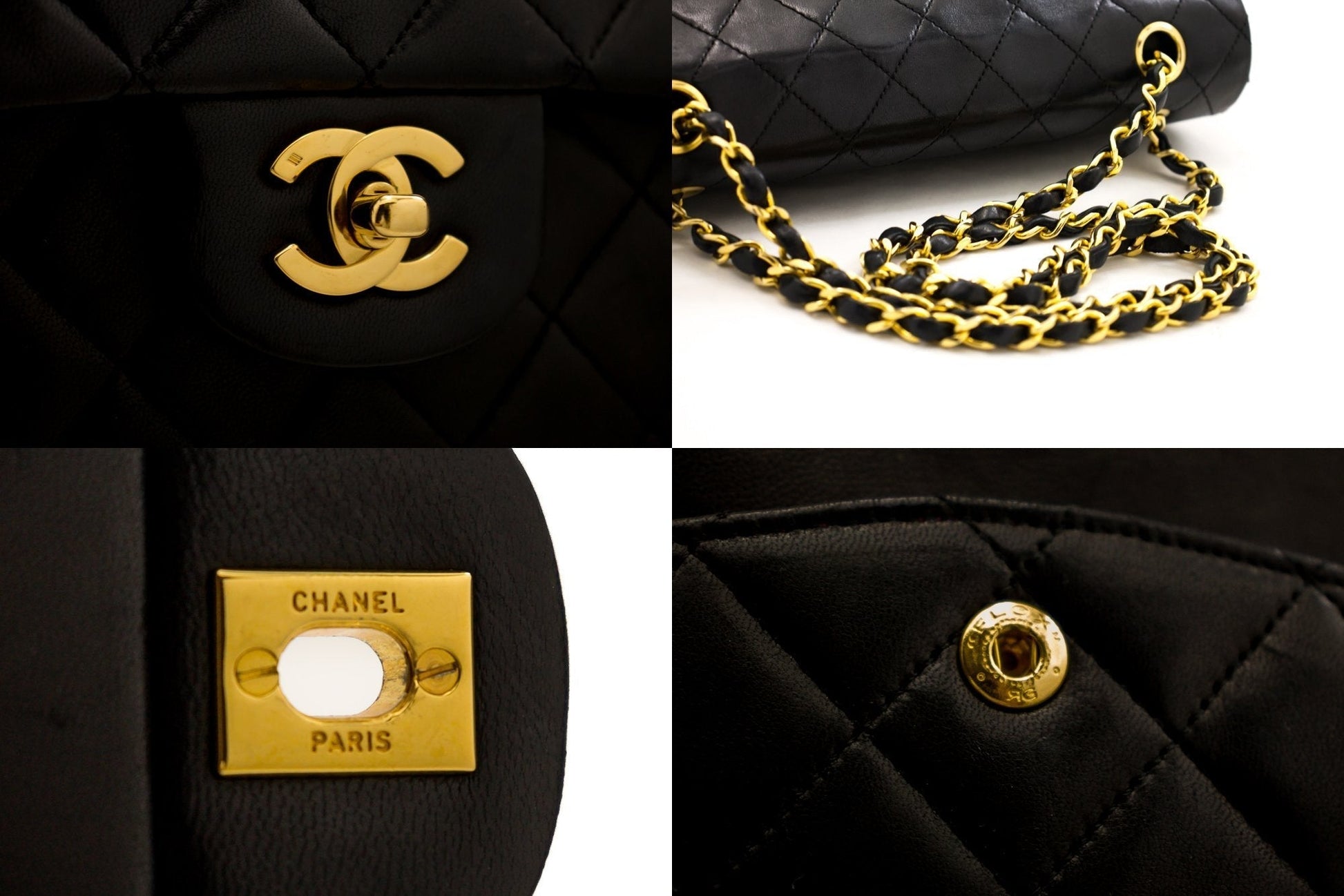 CHANEL 2.55 Double Flap Square Chain Shoulder Bag Black Lambskin