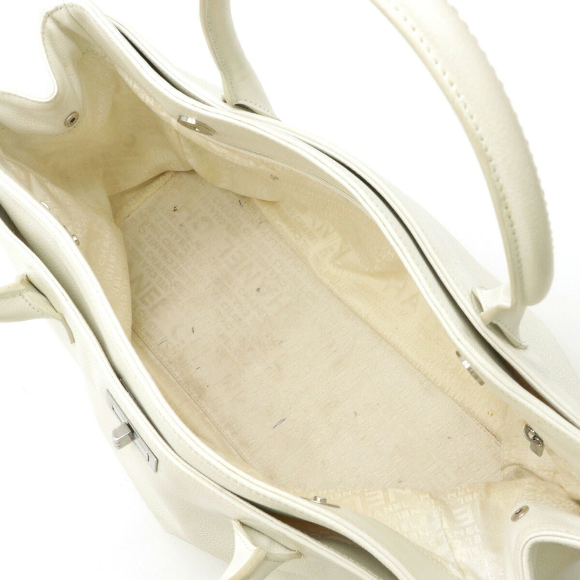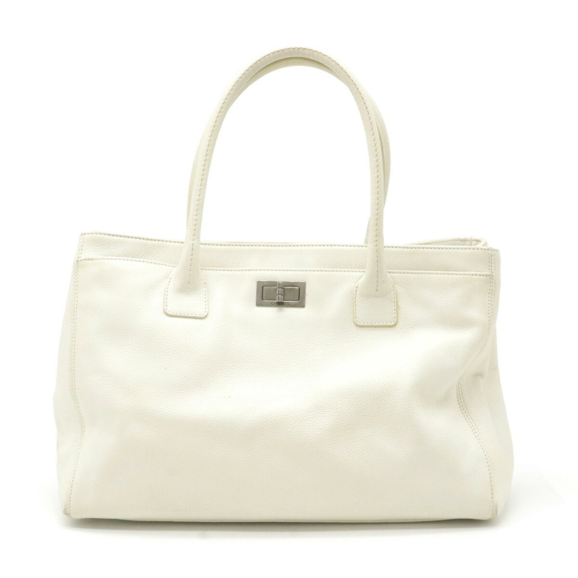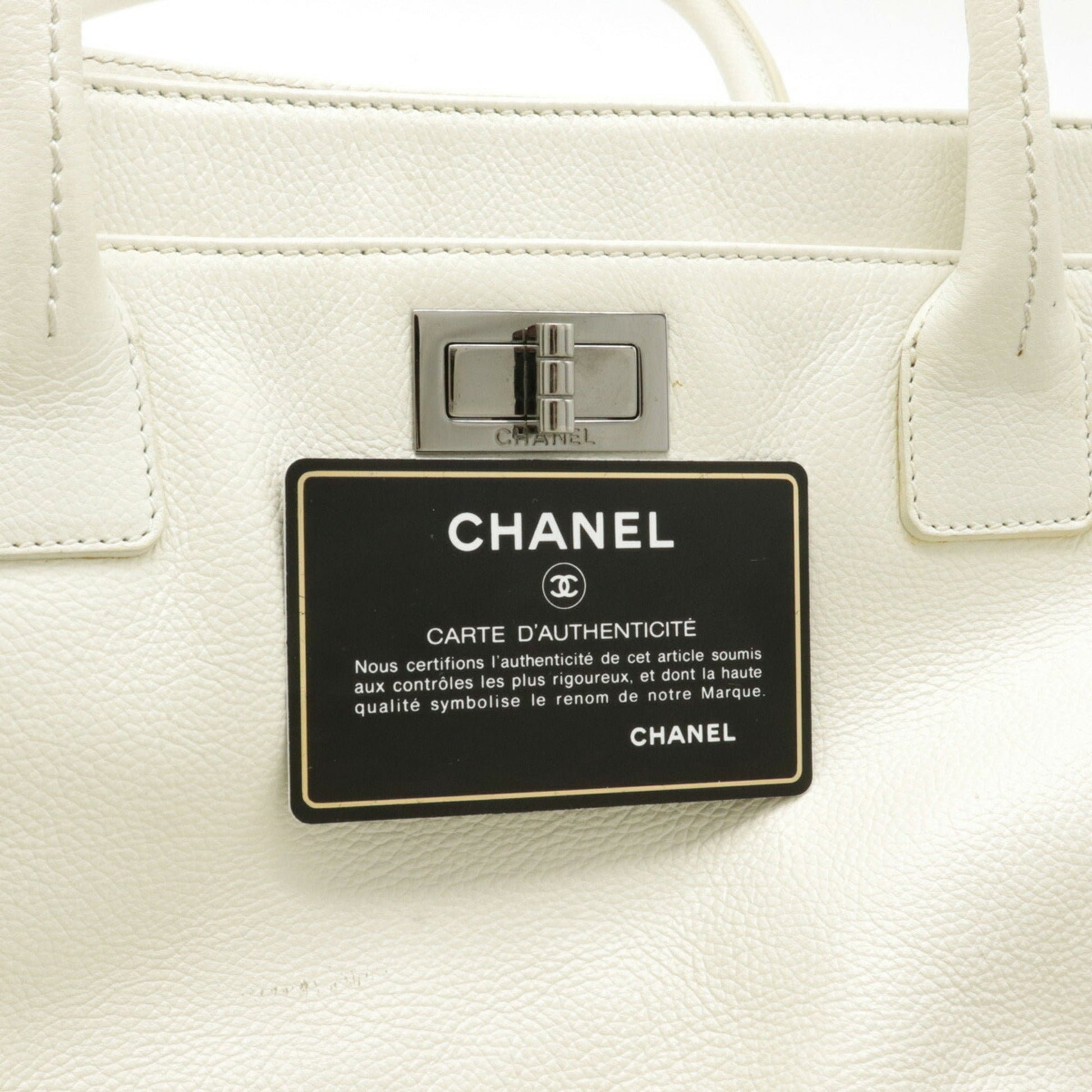 CHANEL 2.55 executive tote bag handbag turn lock leather white A29292