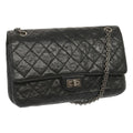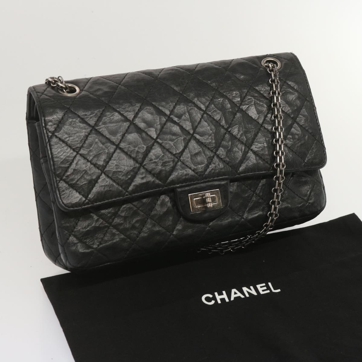 CHANEL 2.55 Matelasse Chain Bag Aged Calfskin Black A37586 CC Auth 67618A