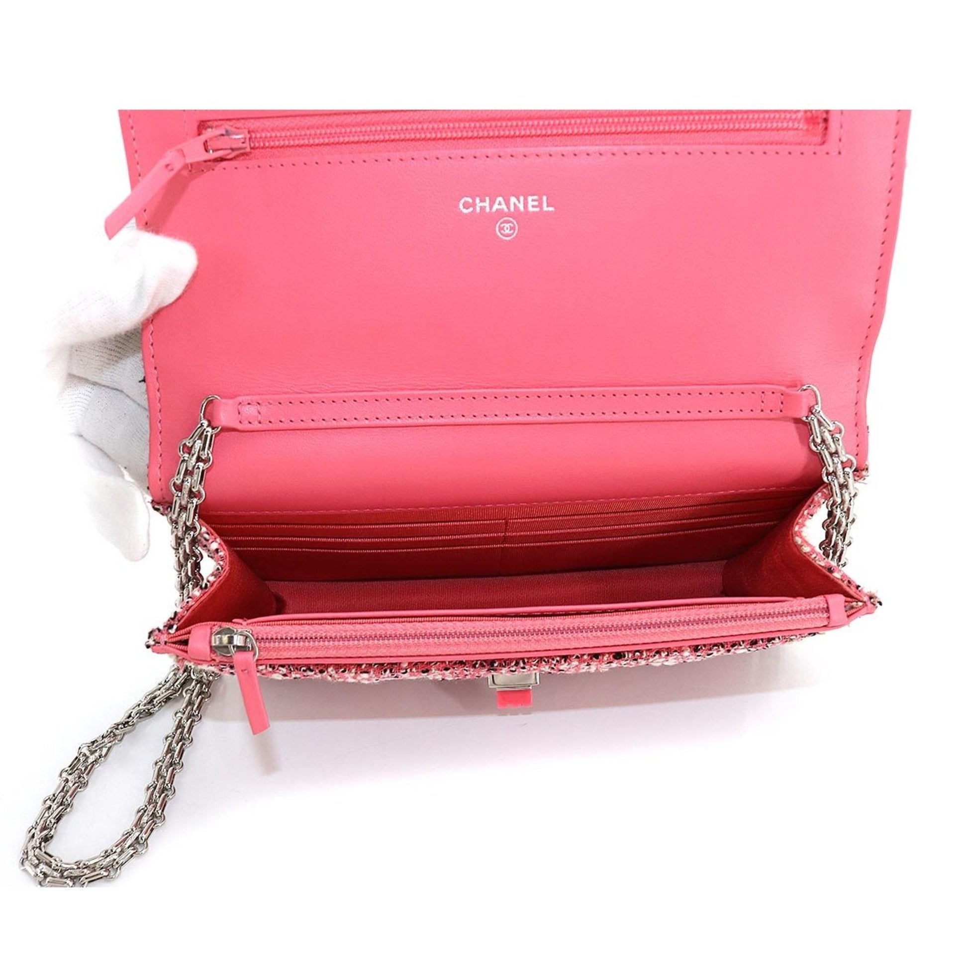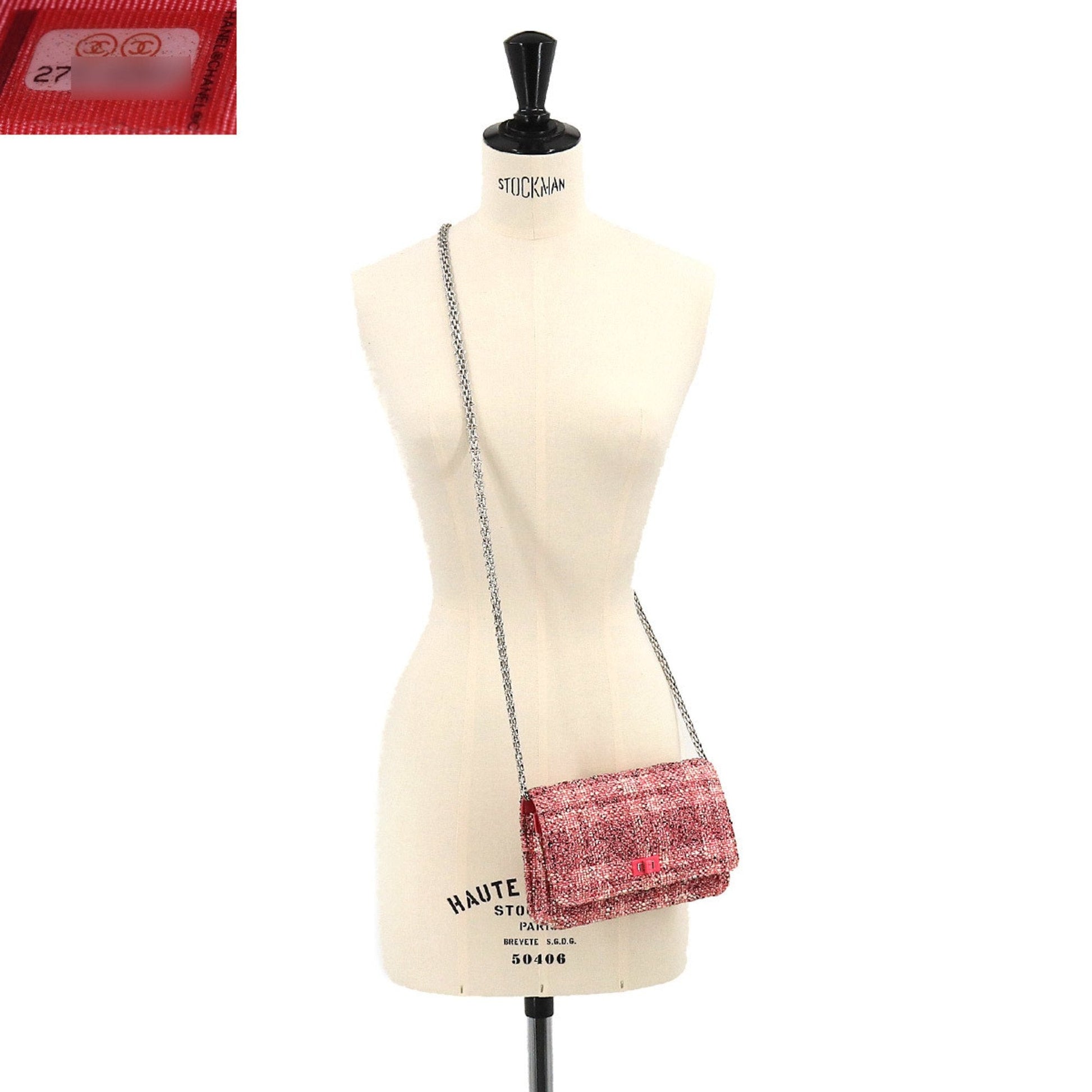 Chanel 2.55 matelasse chain wallet long tweed multicolor silver metal fittings Chain Wallet