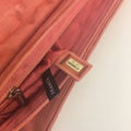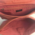This elegant shoulder bag is finely crafted of Suede material in Pink with opaque silver hardware