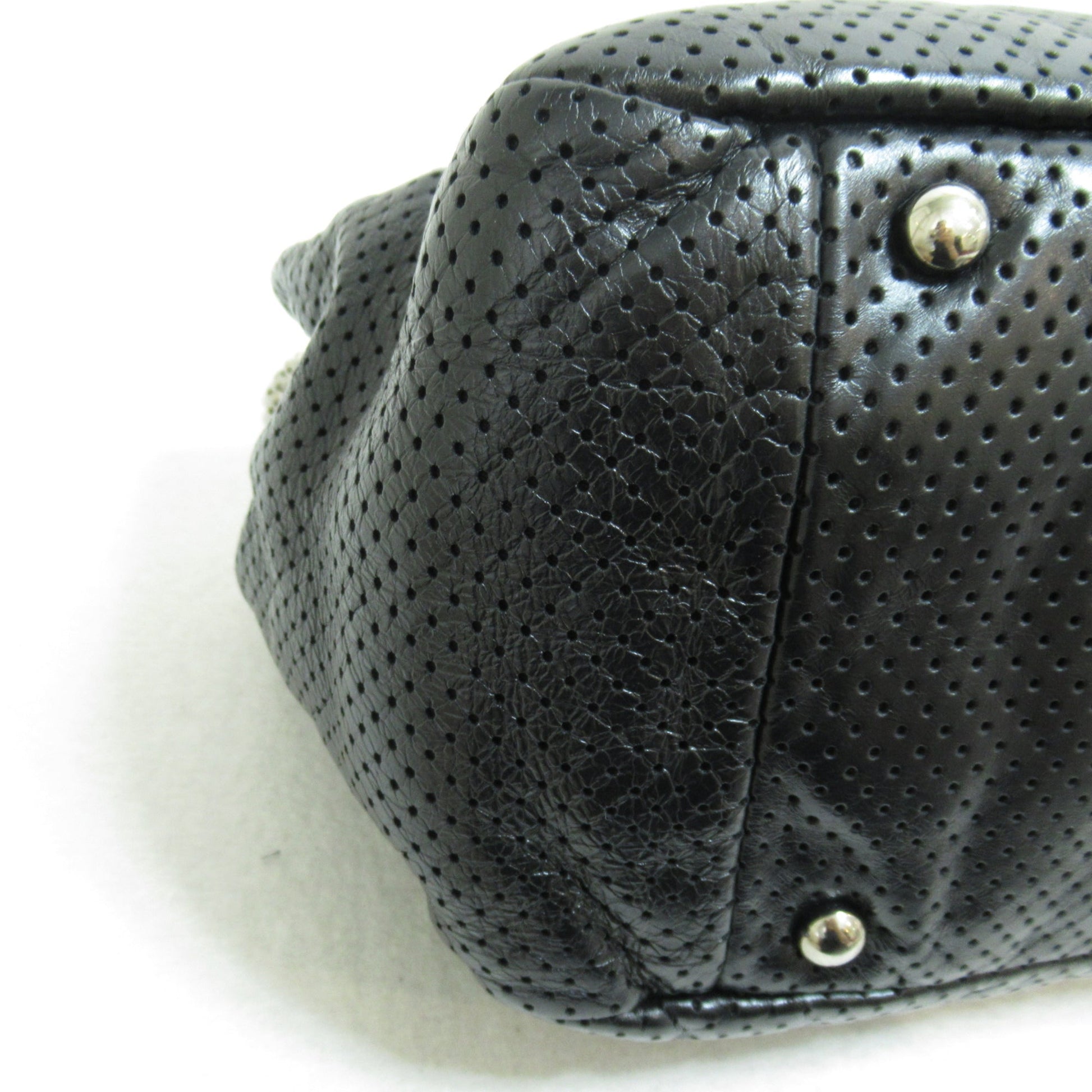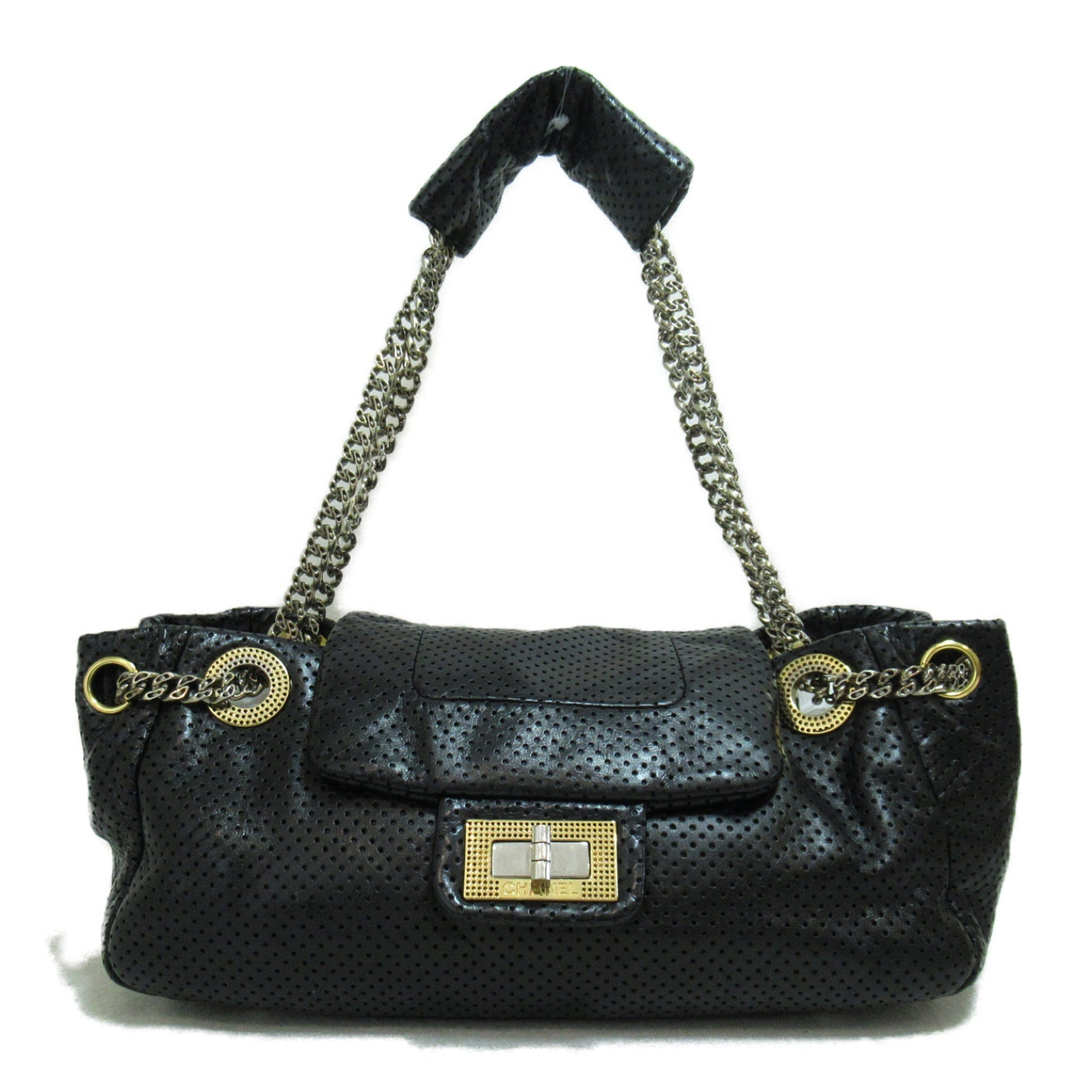 CHANEL 2.55ChainShoulder Bag Black leather Punching leather