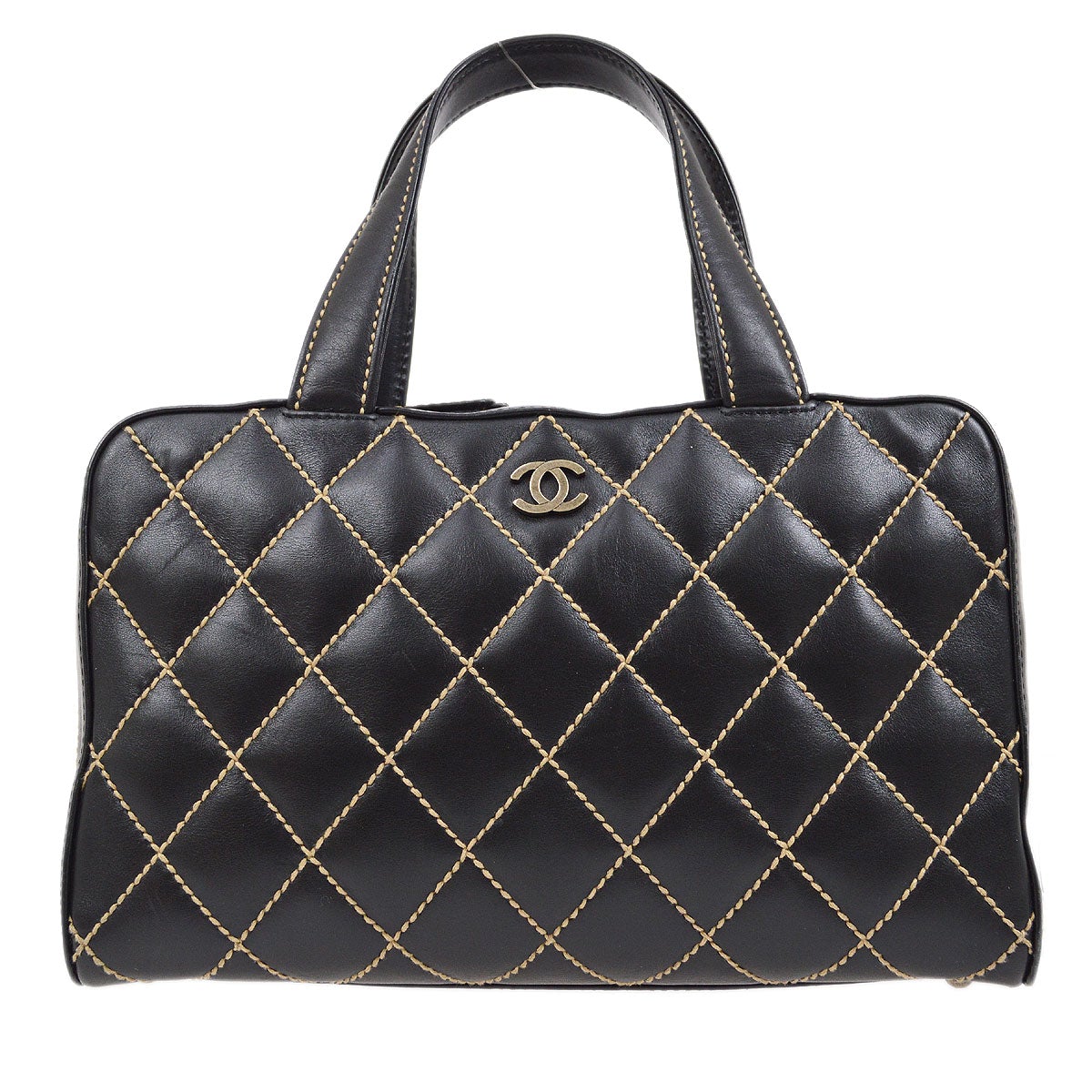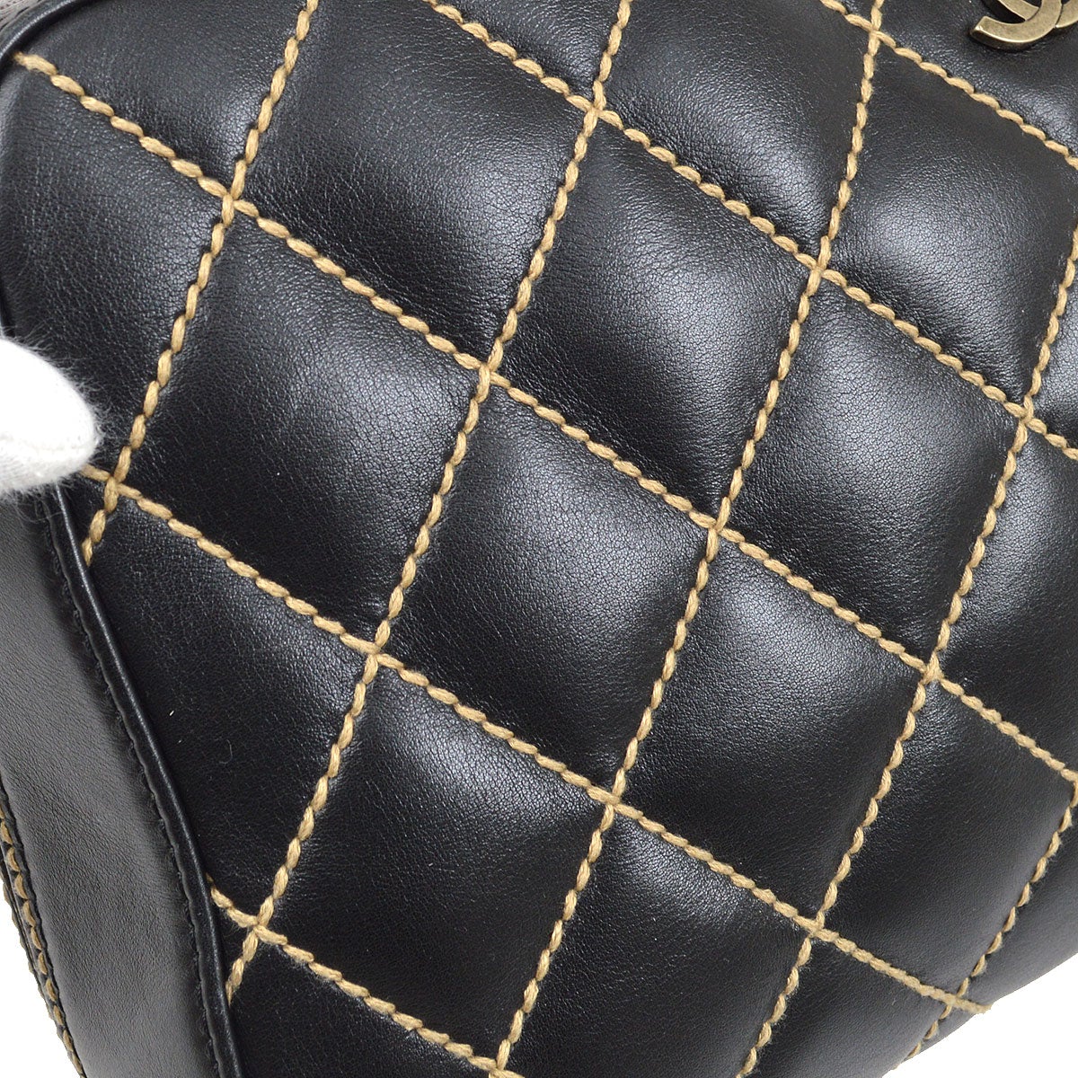 CHANEL Wild Stitch Hand Bag Black Calfskin