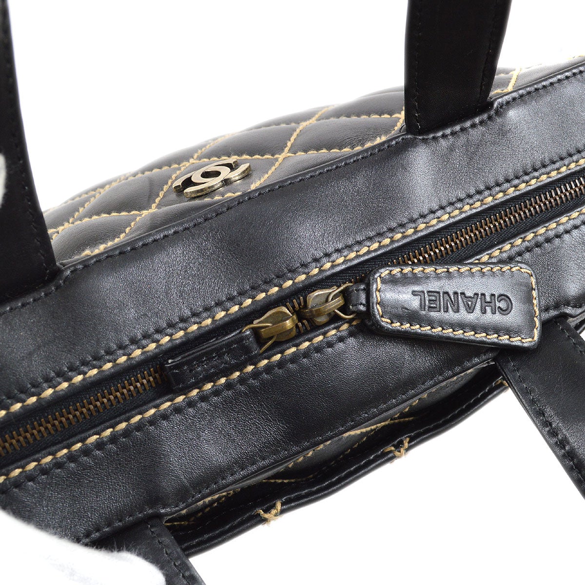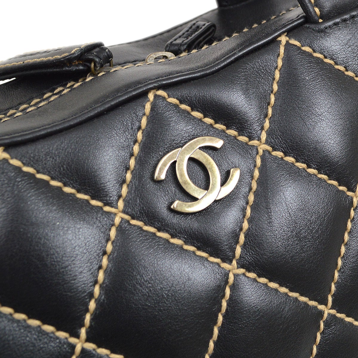 CHANEL 2000-2001 Black Calfskin Gunmetal CC Wild Stitch Handbag AK37963b