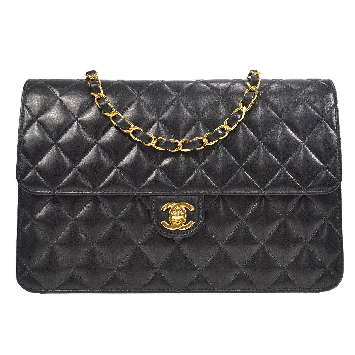 CHANEL Classic Single Flap Medium Shoulder Bag Black Lambskin