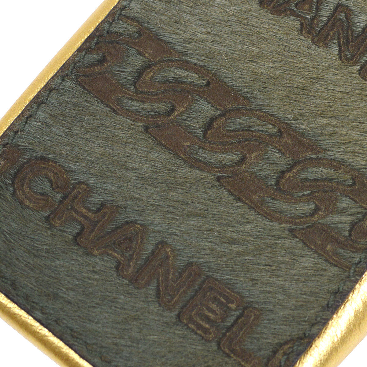 CHANEL 2000-2001 Chain Mini Shoulder Pochette Pony Hair Khaki