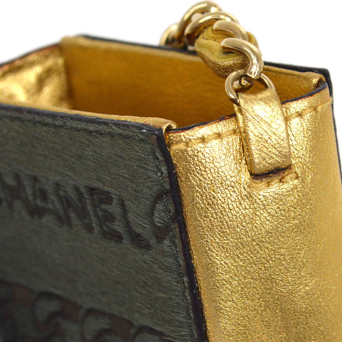 | CHANEL Mini Chain Shoulder Pochette Khaki Gold Pony Fur | |