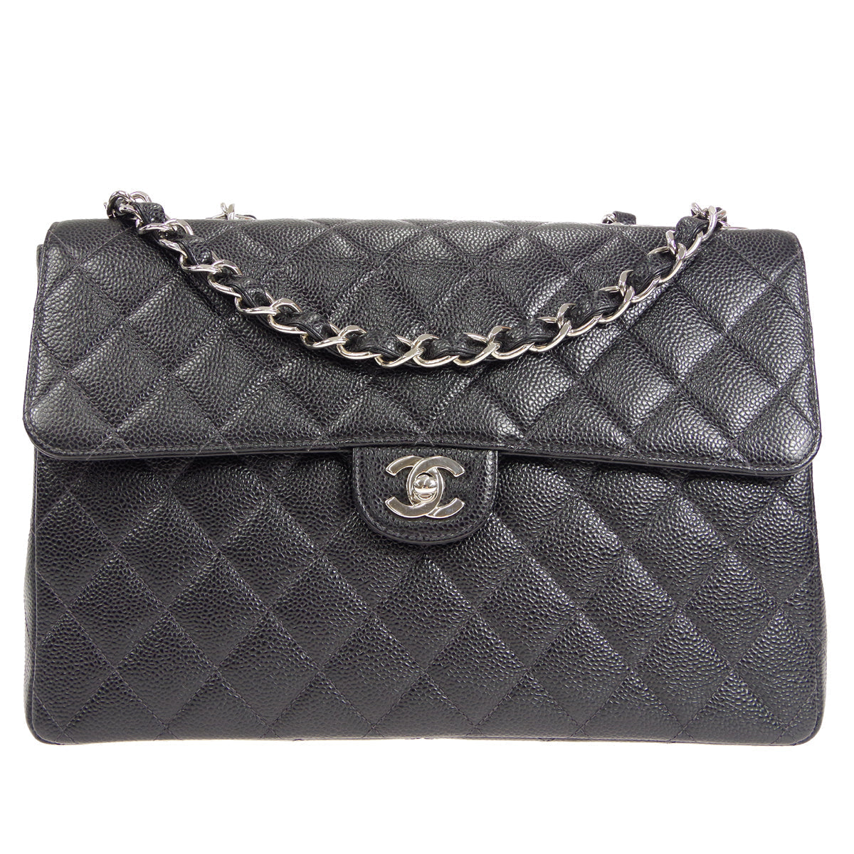 Chanel? 2000-2001 Classic Flap Jumbo SHW Black Caviar 27375