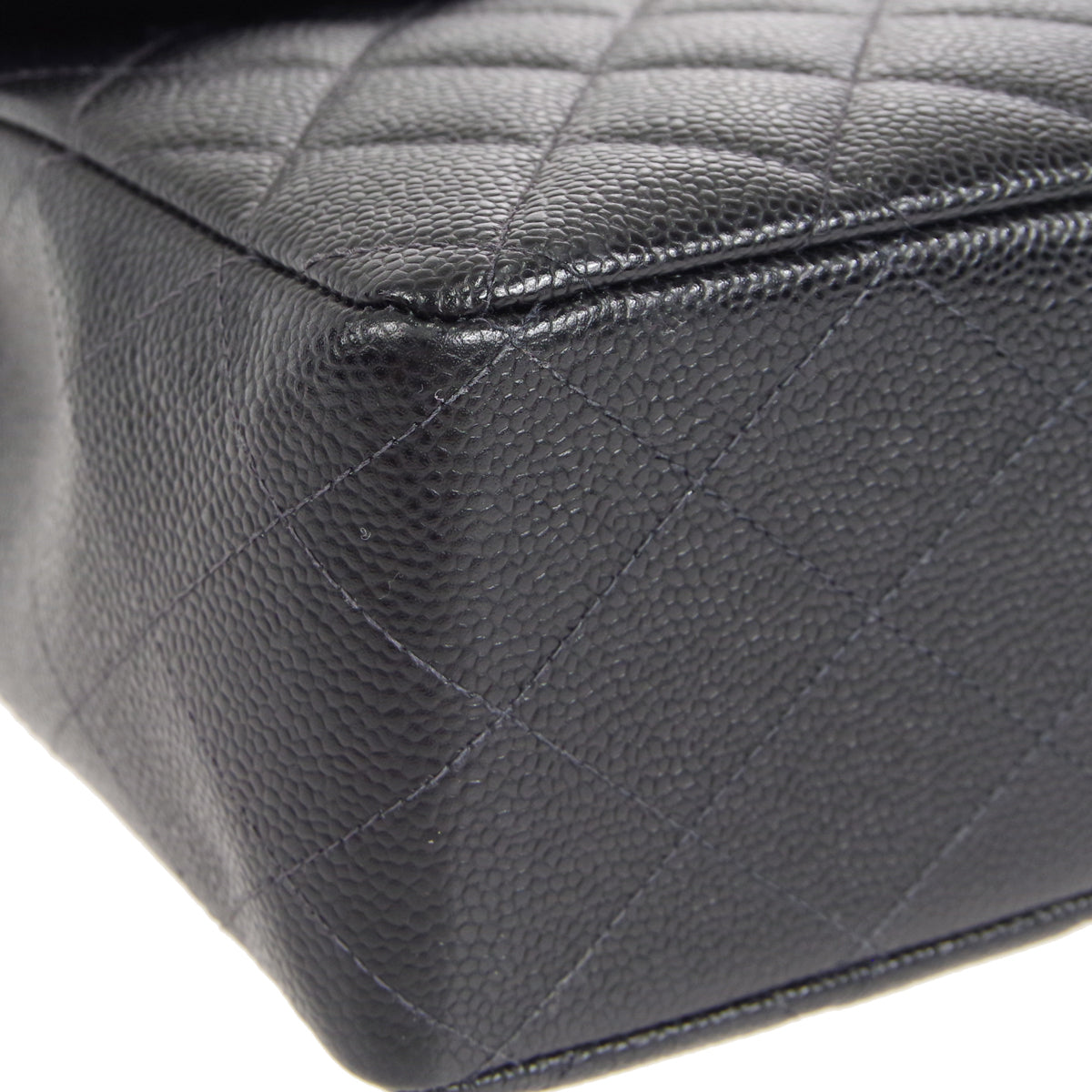 Chanel Classic Flap Jumbo Double Chain Shoulder Bag Black Caviar
