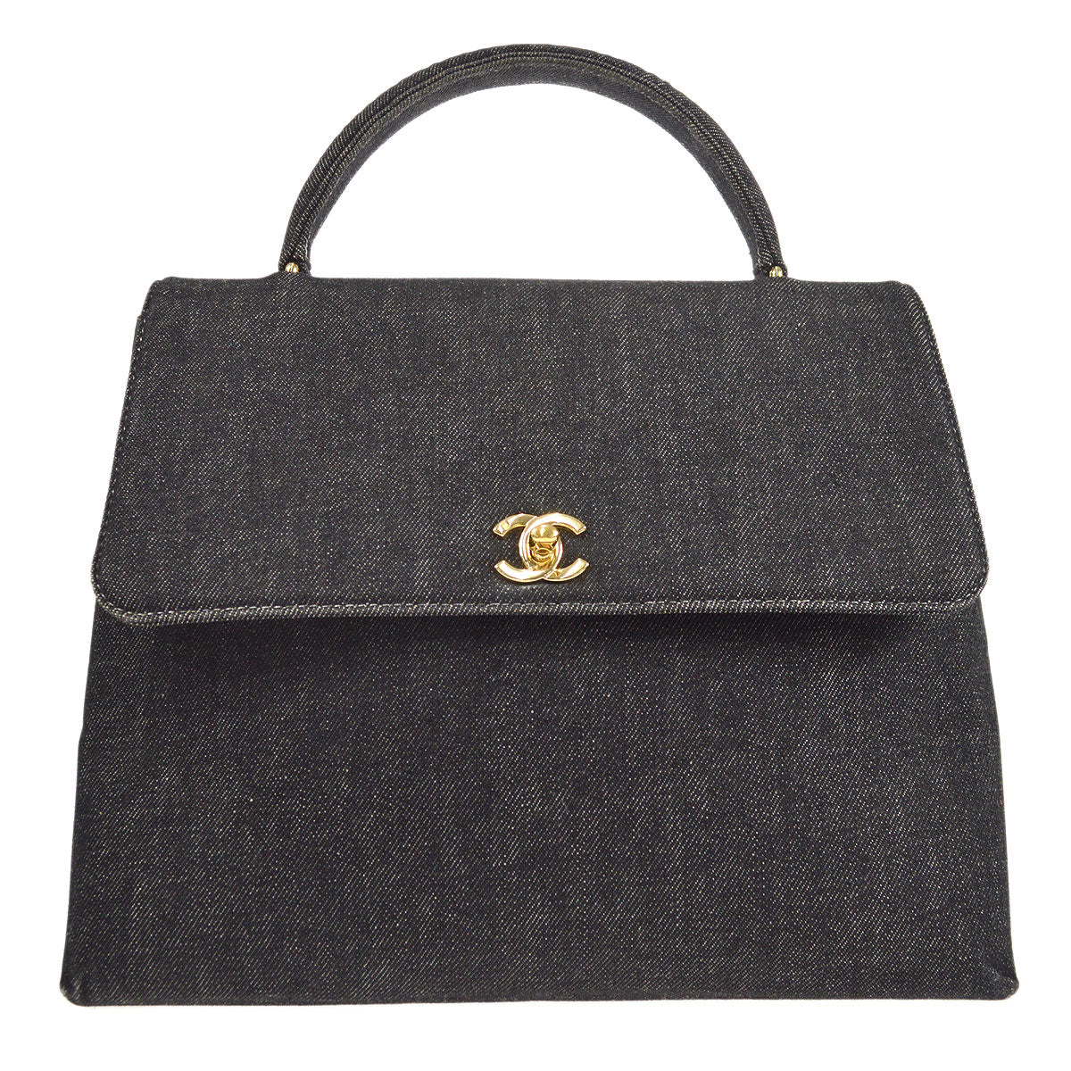 CHANEL 2000-2001 Kelly 30 Denim Black 26591