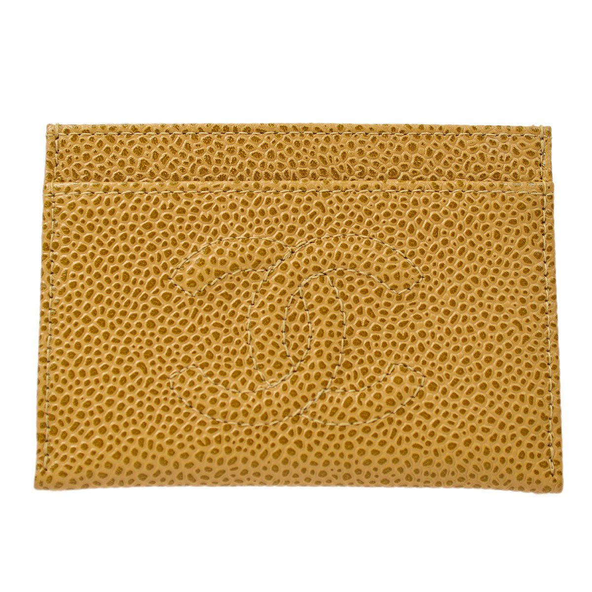 CHANEL 2000-2001 Timeless Card Case Beige Caviar ao32115