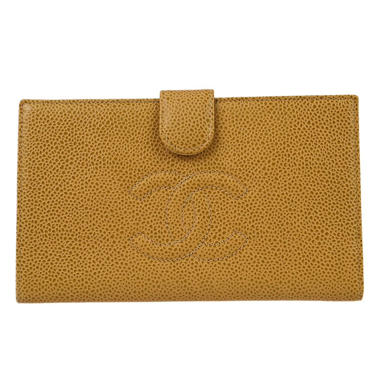 CHANEL 2000-2001 Timeless Long Wallet Beige Caviar 67958
