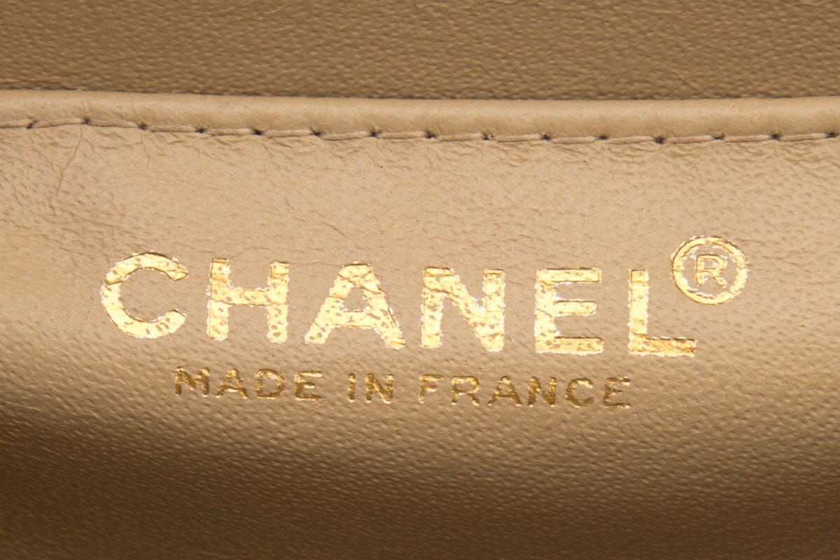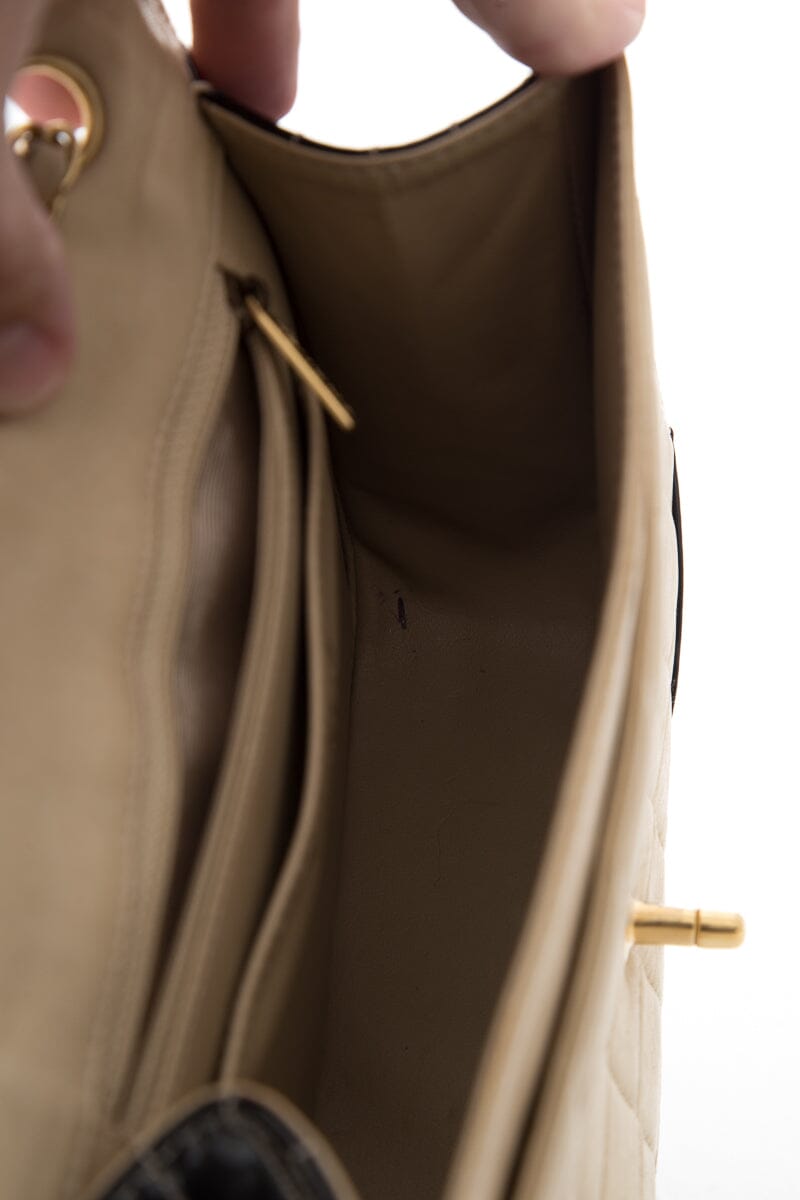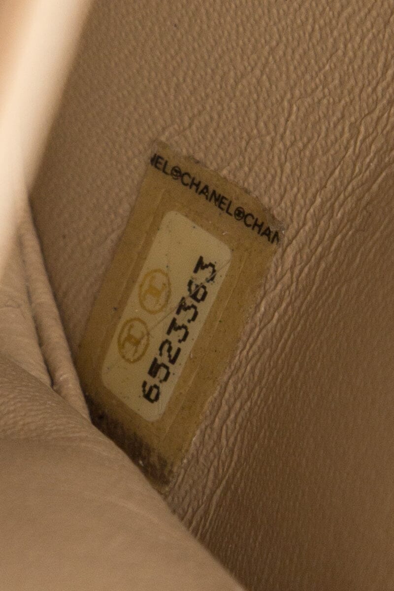 Chanel 2000 Beige/ Black Chocolate Bar Handbag. This item is in vintage; some cosmetic scratching on exterior as well as some discoloring on exterior and a mark on interior.