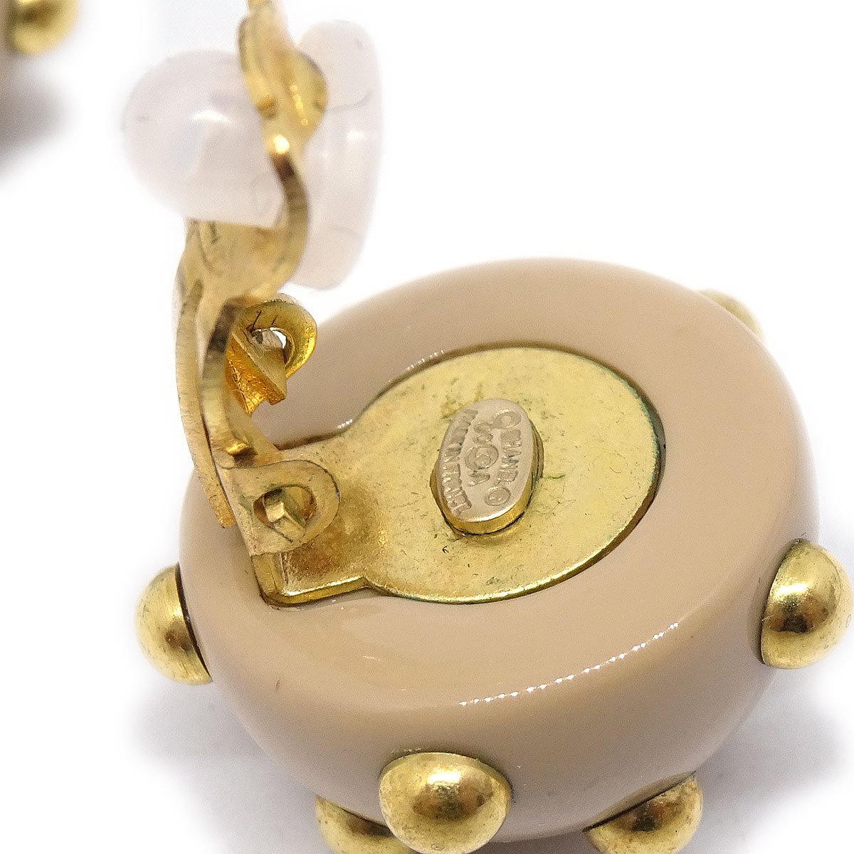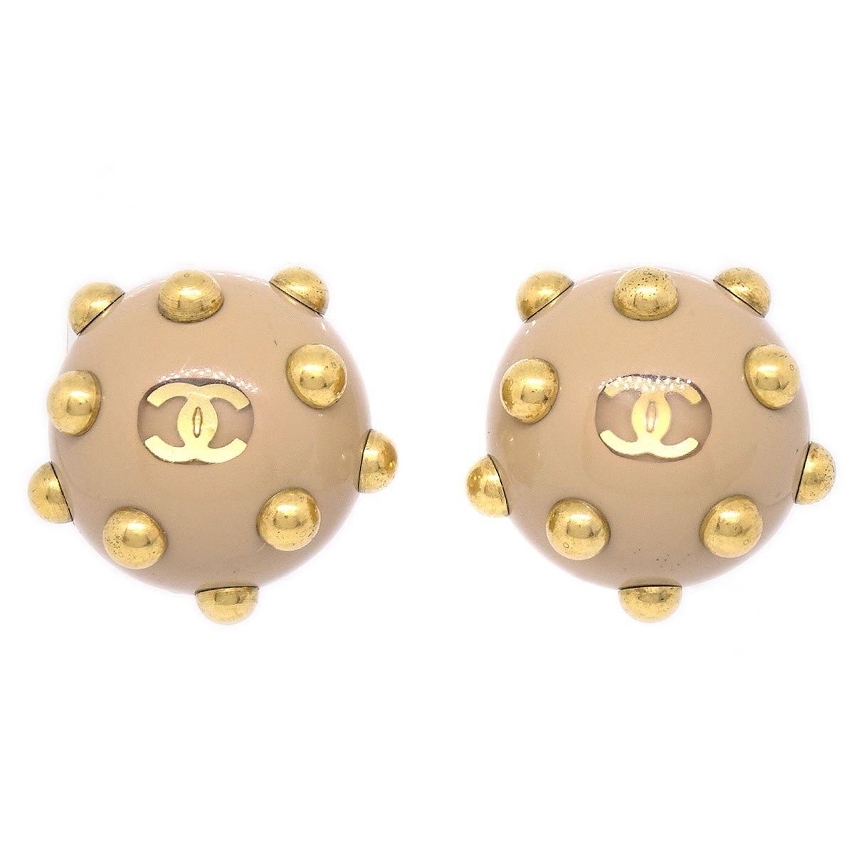 CHANEL Studded Earrings Beige Gold Clip-On 00A