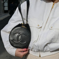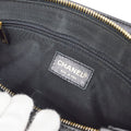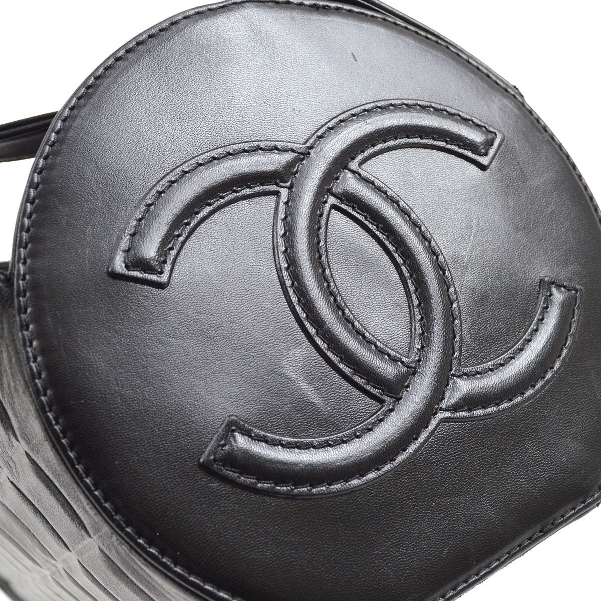 CHANEL Choco Bar Round Hand Bag Black Lambskin
