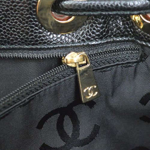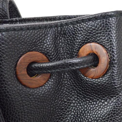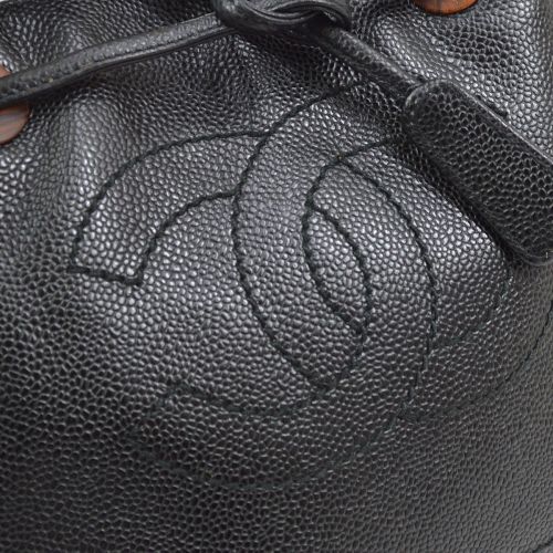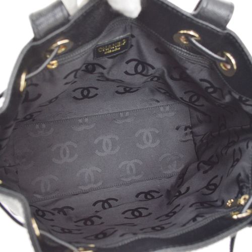 CHANEL CC Logos Drawstring Hand Bag Black Caviar Skin
