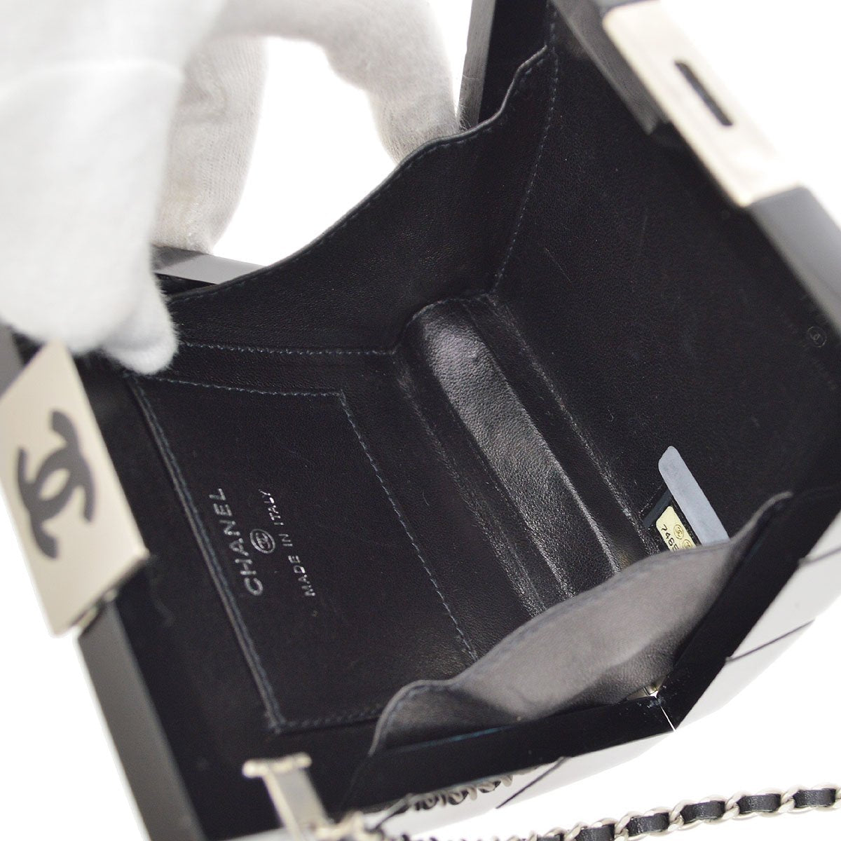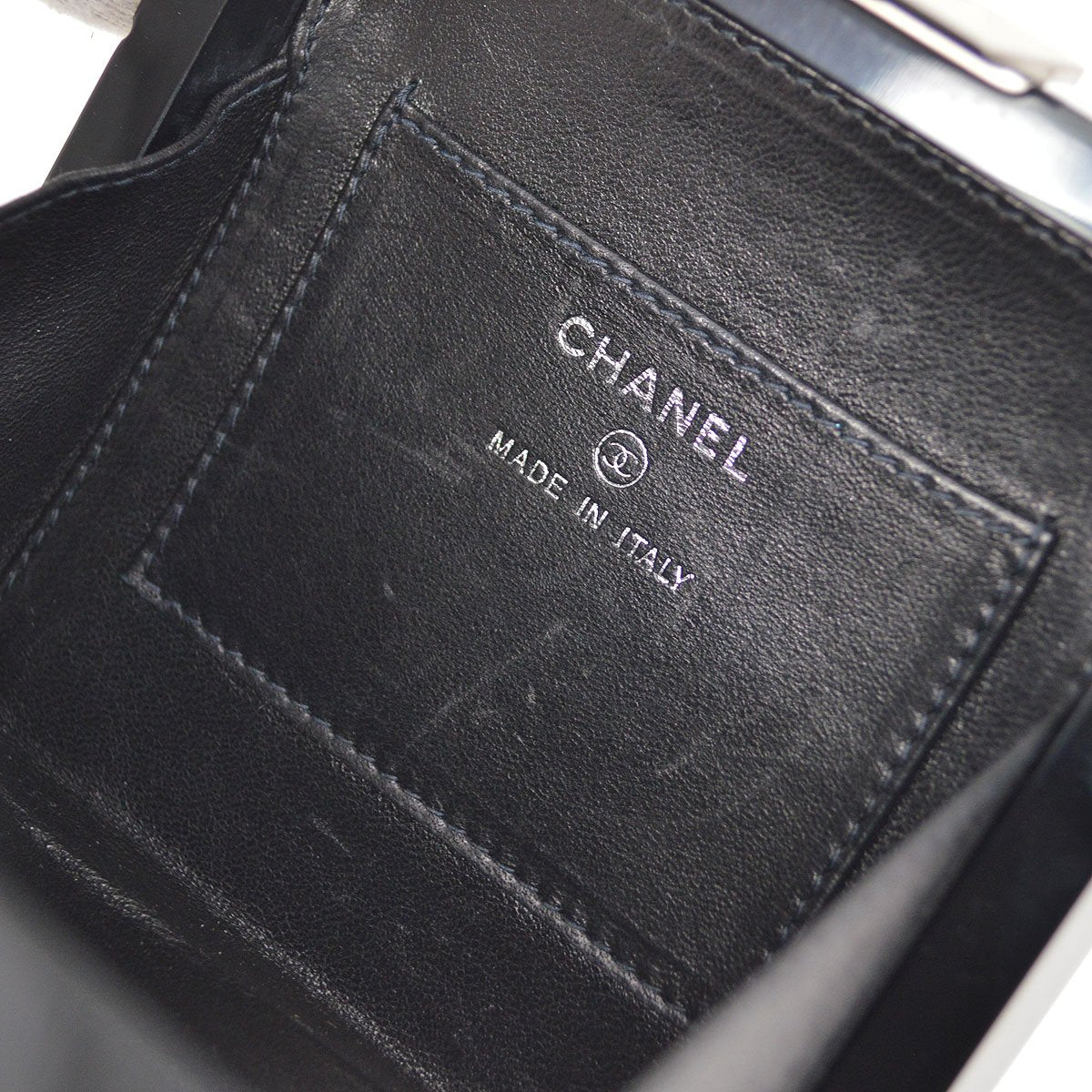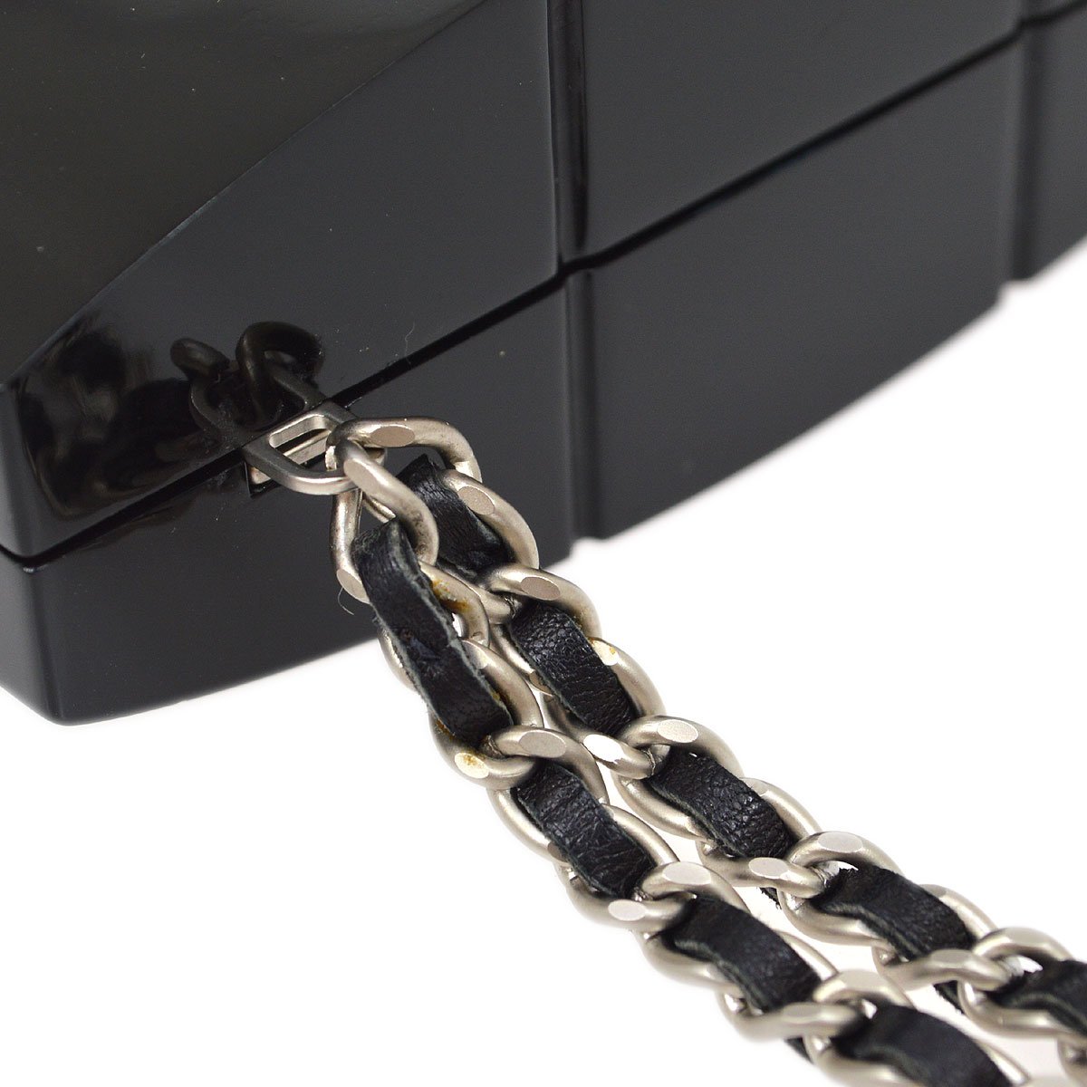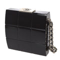 CHANEL Choco Bar Chain Party Clutch Bag Black Plastic