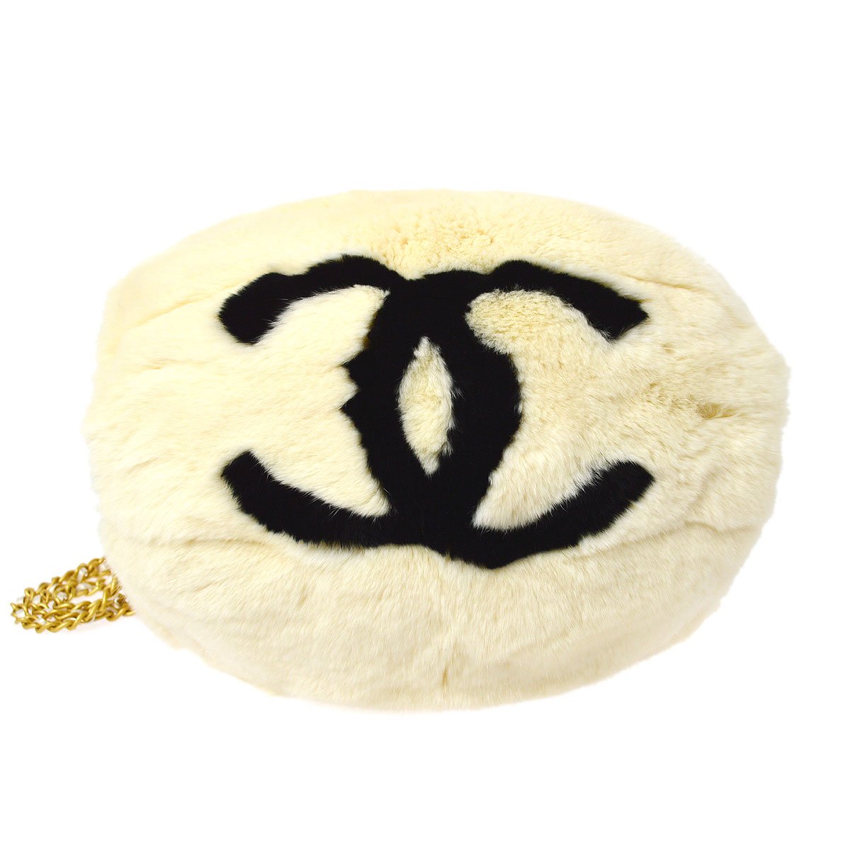 CHANEL Arm Sleeve Chain Shoulder Bag White Rabbit Fur