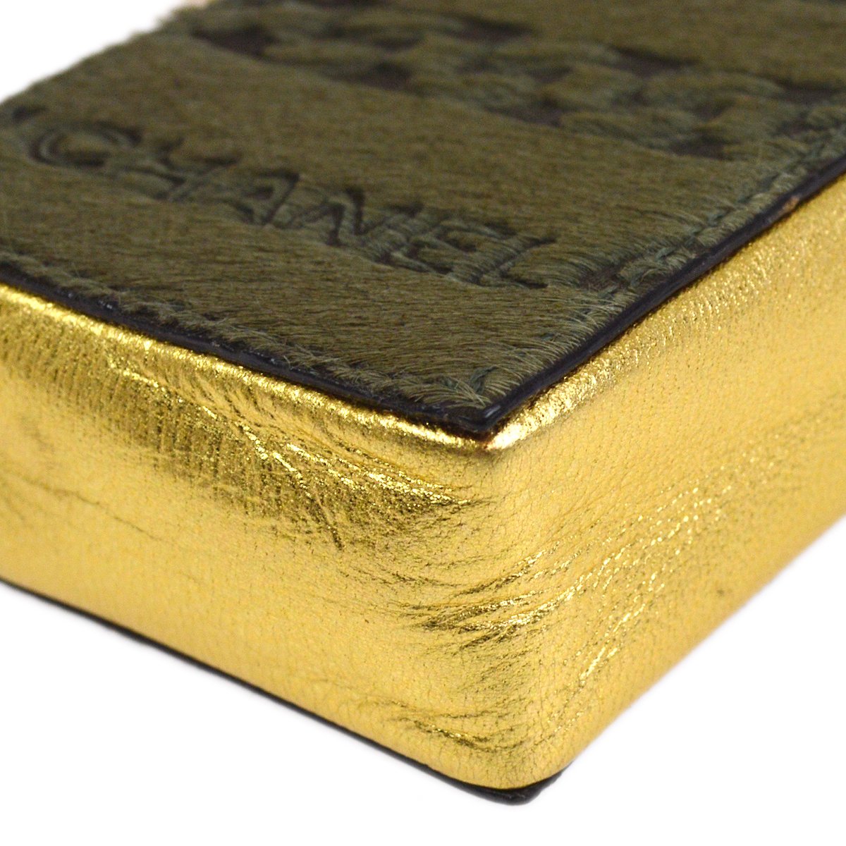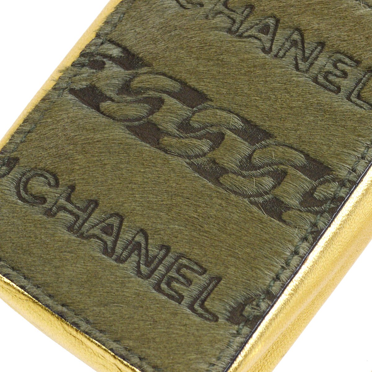 CHANEL 2001 Chain Mini Shoulder Pochette Pony Hair Khaki