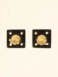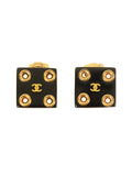 CHANEL 2001 Made Square Cc Mark Earrings Gold/Black
