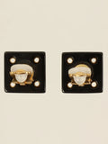 CHANEL 2001 Made Square Punching Cc Mark Earrings Black/Gold