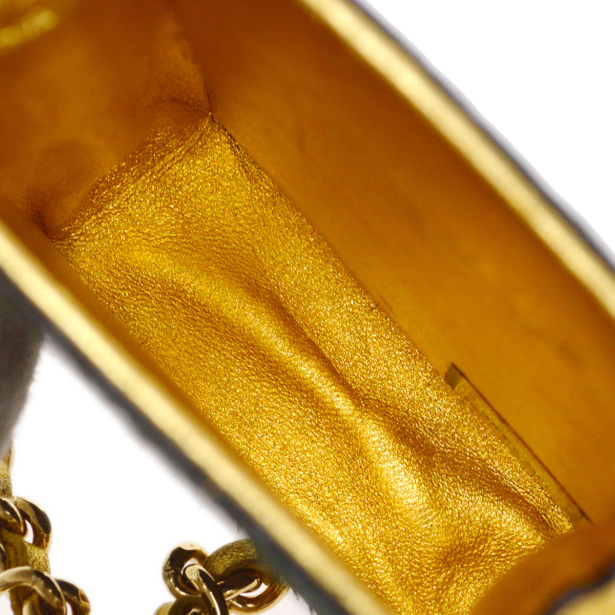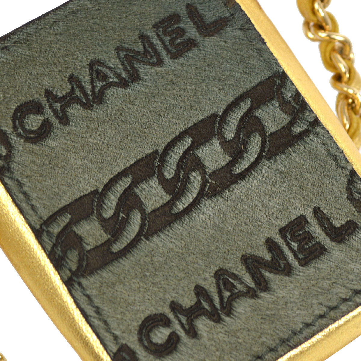 CHANEL Chain Mini Shoulder Bag Pouch Khaki Gold Fur