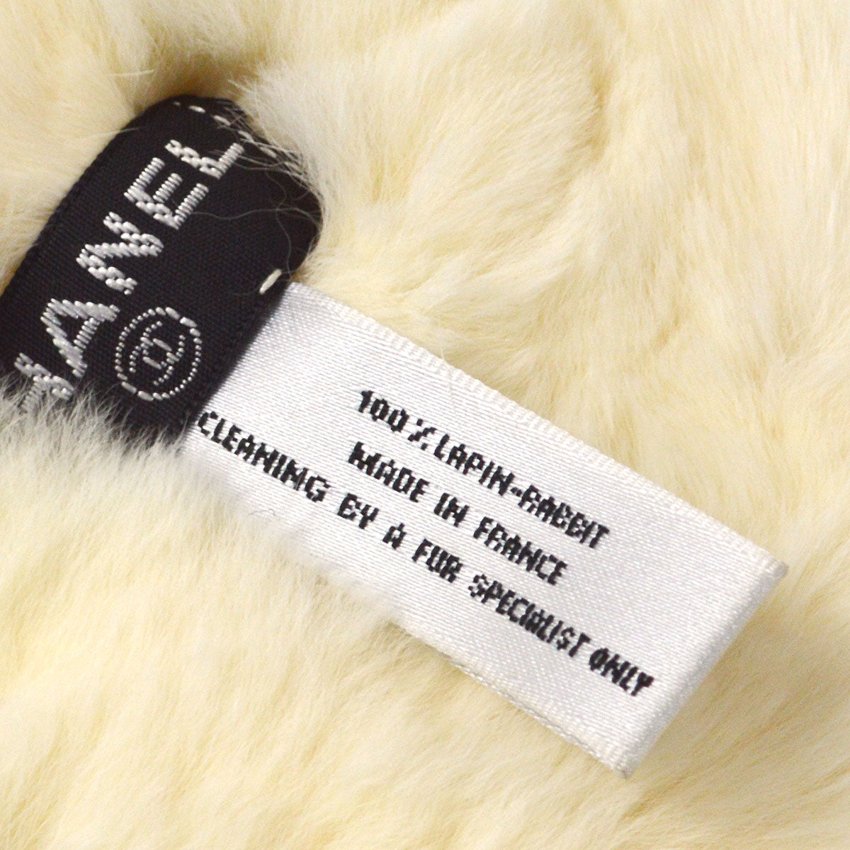 CHANEL Lapin Fur Bangle Wristband White