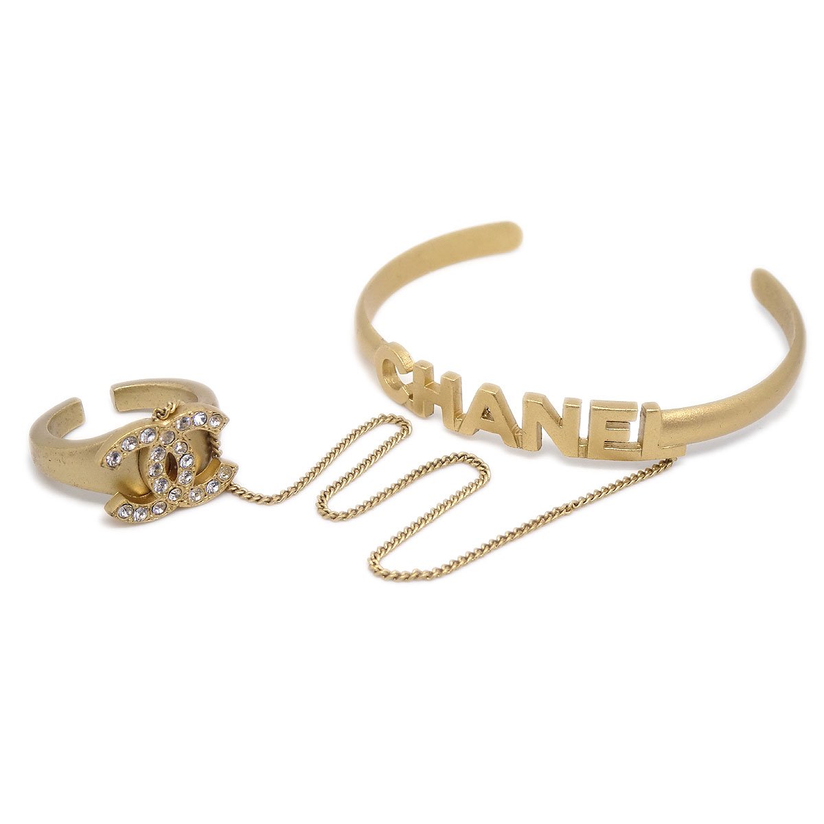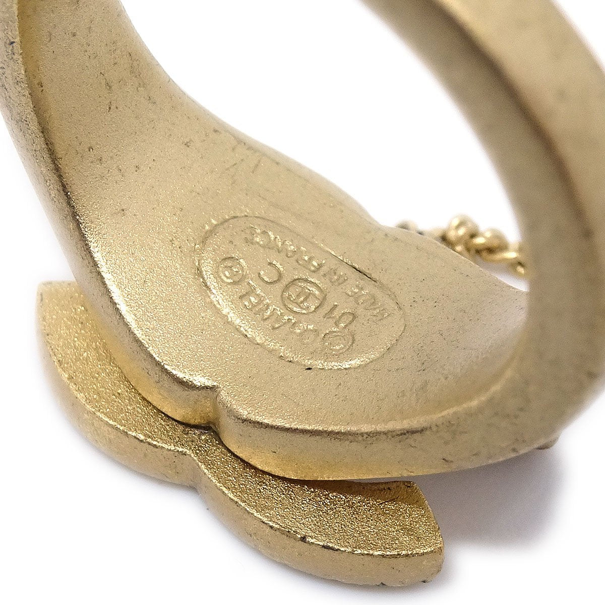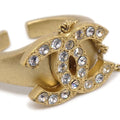 CHANEL Rhinestone Bangle Ring Gold #5.5 01C