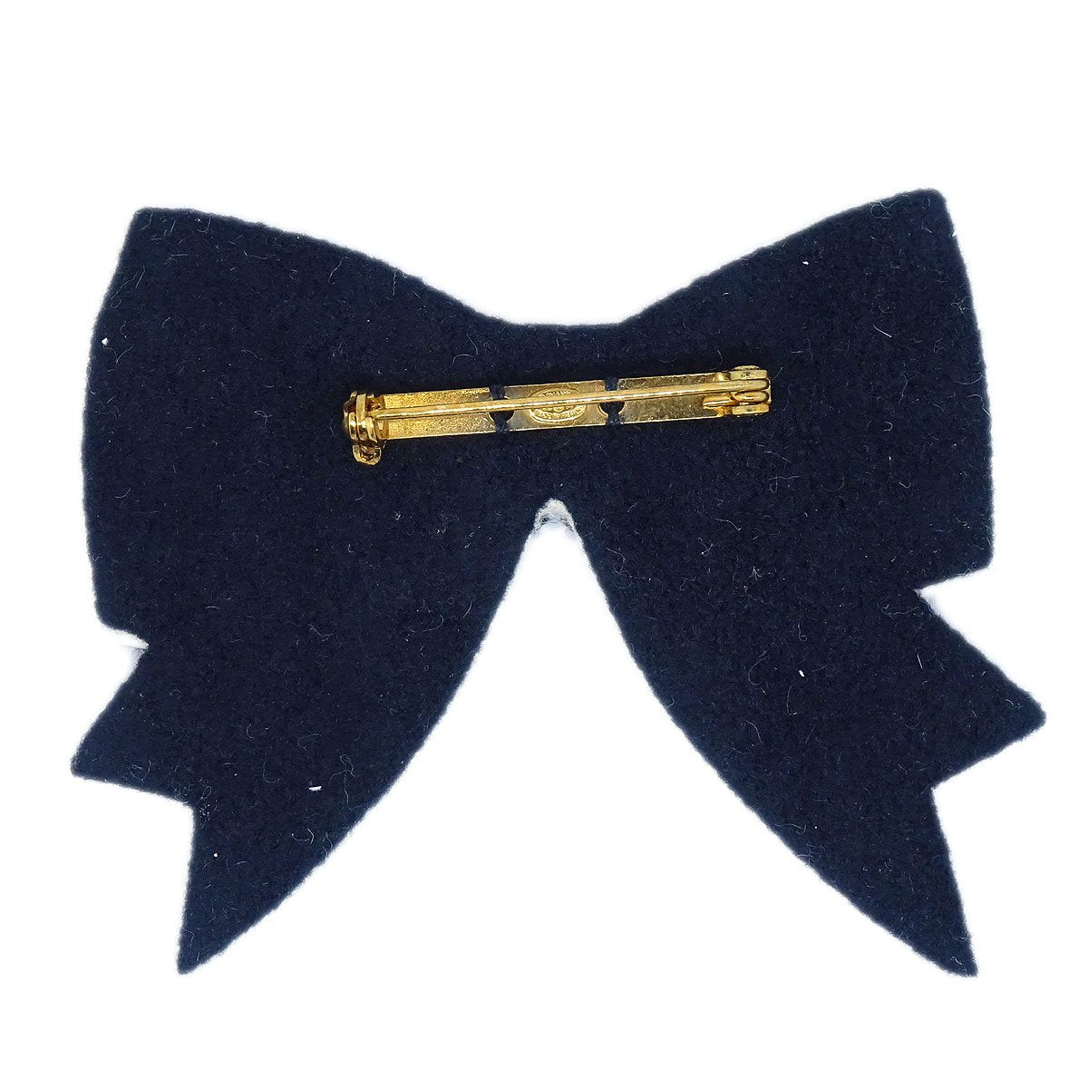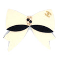 CHANEL 2002 Faux Pearl Bow Brooch Pin White Felt ao32524