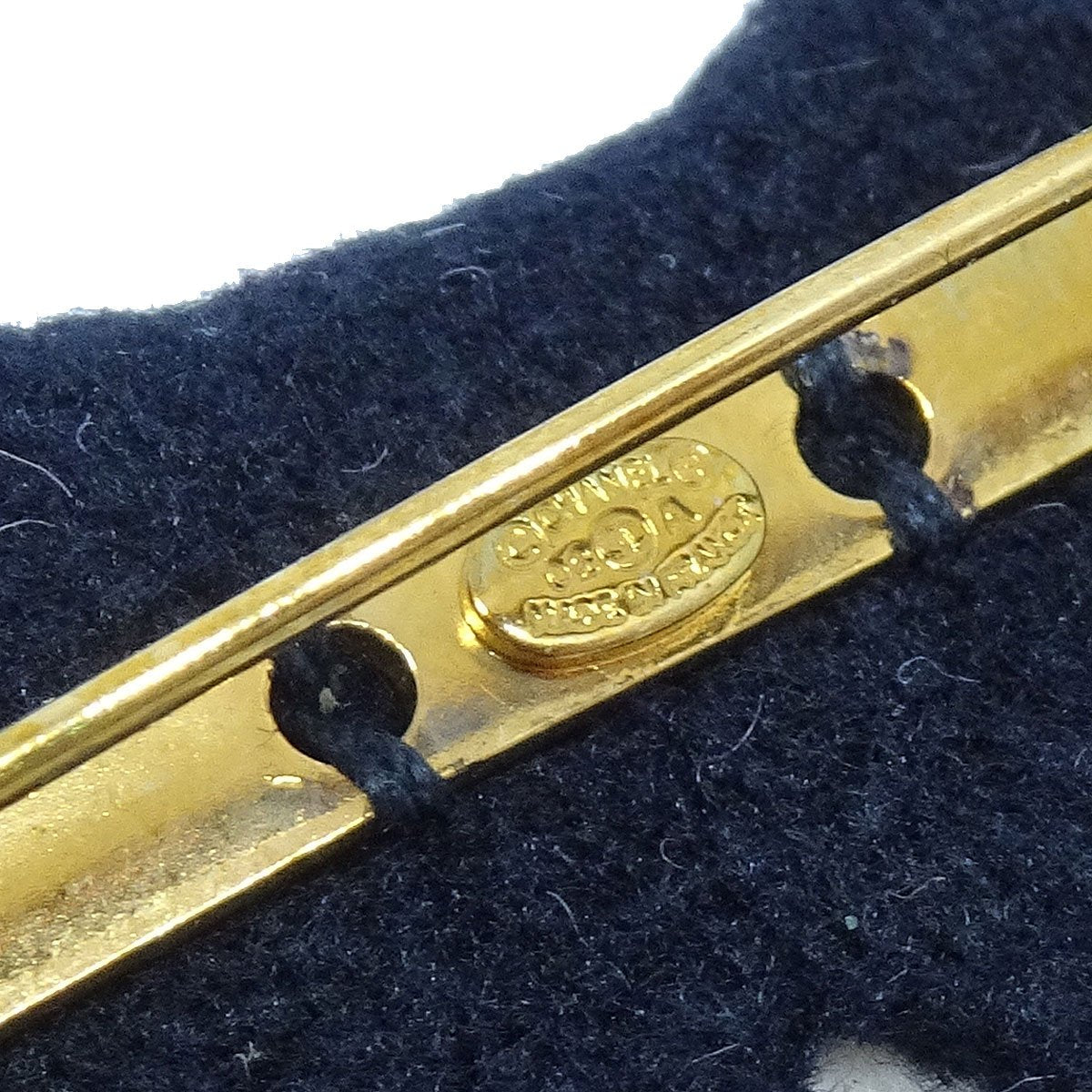 CHANEL Imitation Pearl Bow Brooch Pin White Felt 02A