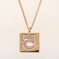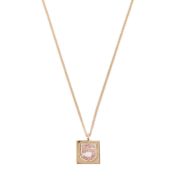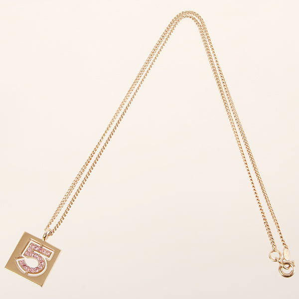 CHANEL 2002 Made Rhinestone No.5 Square Necklace Pink