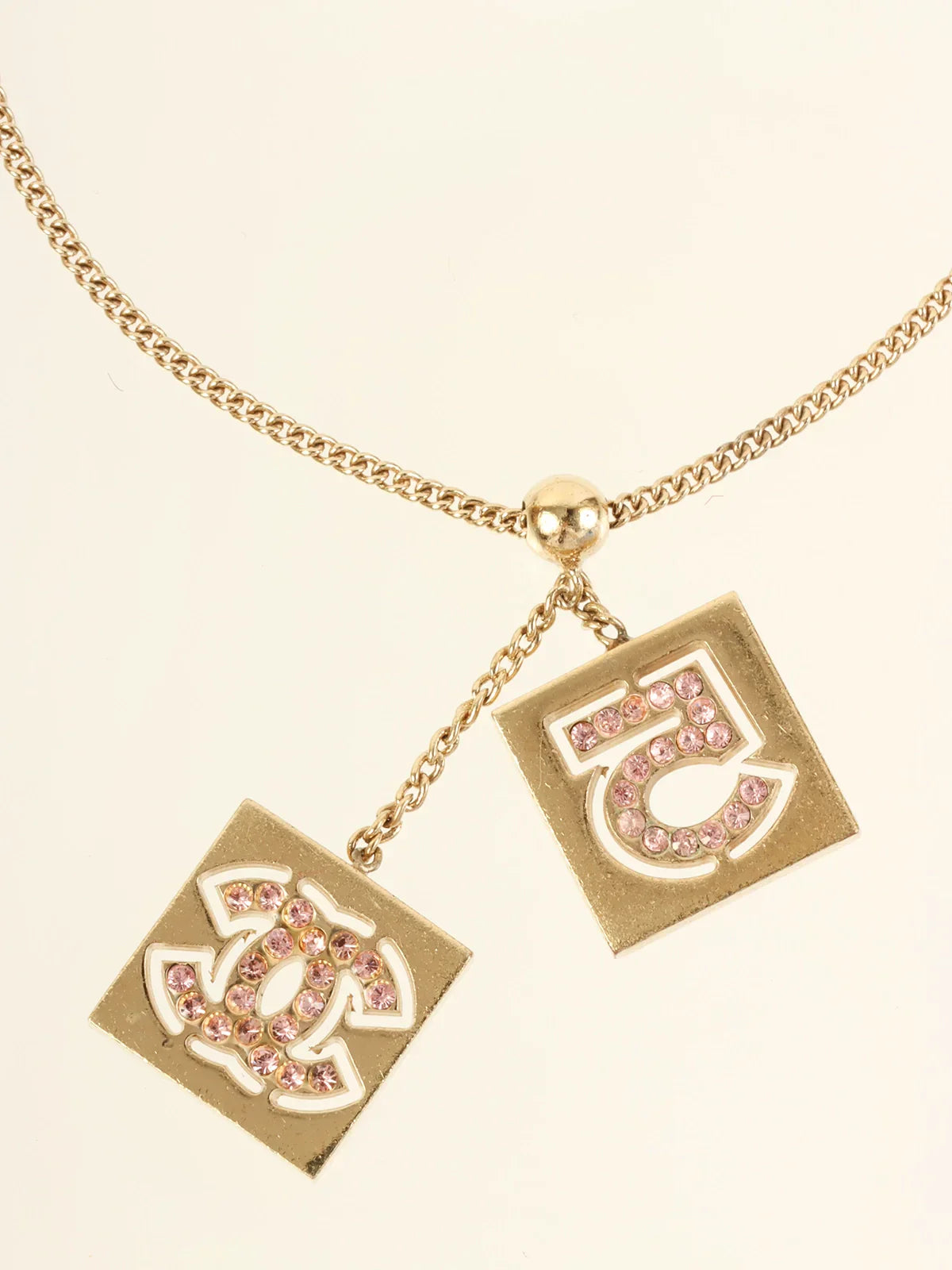 CHANEL 2002 Made Rhinestone Square No.5 Cc Mark Bracelet Gold/Pink